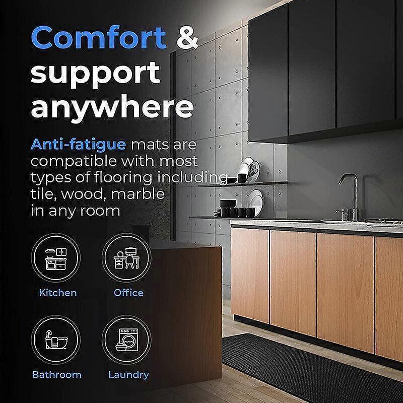 Comfort Anti-Fatigue: Cushioned Mat Reduces Pressure On Feet While Cooking Preparing Food Or Working At A Standing Desk. Eco-Friendly Durable: Made From Foamed Pvc Material Strong And Reliable For Everyday Kitchen Use. Anti-Slip Design: High-Grip Backing Keeps The Mat Secure On Multiple Surfaces Including Wood Ceramic And Marble. Easy To Clean: Oil-Proof And Waterproof; Simply Wipe Clean With A Damp Cloth Sponge Or Household Cleaner. Modern Versatile: Stylish Design Suitable For Home Office Or Hotel Use. Specifications