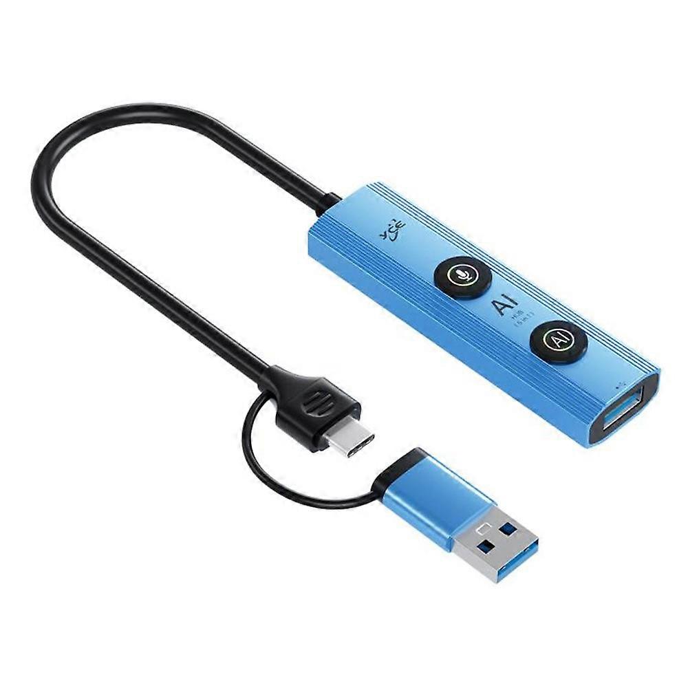 【Versatile Connectivity】Equipped with two USB 2.0 ports for stable connection of mice and keyboards, and one high-speed USB 3.0 port for rapid data transfer with storage devices. 【Powerful AI Software】AitronLink AI application offers advanced features like AI drawing, image generation, and face swapping, ideal for design, e-commerce, and education sectors. 【Precise Voice Input】Advanced voice recognition technology ensures highly accurate speech-to-text conversion for efficient input. 【Plug and Play】No driver installation required. Simply connect to USB or Type-C ports for instant recognition and use of all functions. 【High-Speed Data Transfer】USB 3.0 port supports theoretical transfer speeds up to 5Gbps, significantly reducing wait times for large file transfers. 【Stable Performance】High-quality chip and circuit design minimize signal interference, ensuring stable connections and smooth software operation. 【Wide Compatibility】Compatible with most USB 3.0 / Type-C devices including laptops, tablets, smartphones, and various peripherals. Supports Windows, for MacOS, and Android operating systems. Specifications: Input Interface: USB 3.0, Type-C Output Interfaces: 1 x USB 3.0, 2 x USB 2.0 Material: Aluminum alloy shell Dimensions: 83.5 x 23.7 x 13.3 mm Cable Length: 17 cm Net Weight: 70 g