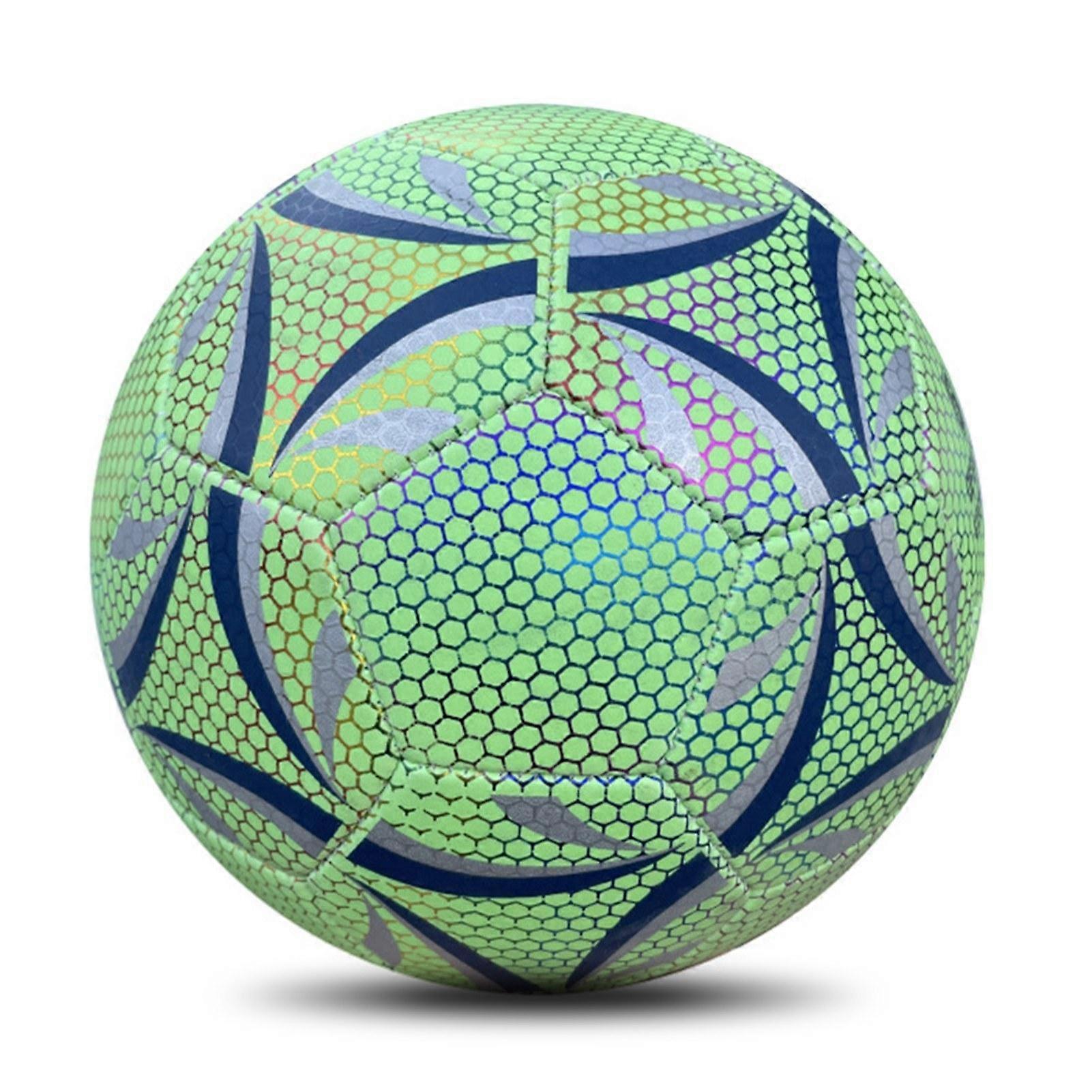 ・Made of wear-resistant PU leather,EVA foam,and rubber bladder,ensure good bounce and shape retention ・Reflective surface is visible and attractive when the light is shining on it at night ・Great for taking photos or videos with the camera flash on ・Perfect for day and night soccer training ・Come with two ball needles and a pump,easy to inflate the ball ・Provided mesh pouch,convenient to carry Specification: ・Material:TPU + EVA + Rubber ・Size 4: ・Circumference:620 - 650 mm/24.4 - 25.6 in ・Weight:320 - 360 g/11.3 - 12.7 oz ・Recommendation:For 8-14 years old ・Size 5: ・Circumference:680 - 700 mm/26.8 - 27.5 in ・Weight:420 - 445 g/14.8 - 15.7 oz ・Recommendation:For 16+ years old Package included: ・1 x Reflective Soccer Ball ・1 x Pump ・2 x Ball Needle ・1 x Mesh Pouch