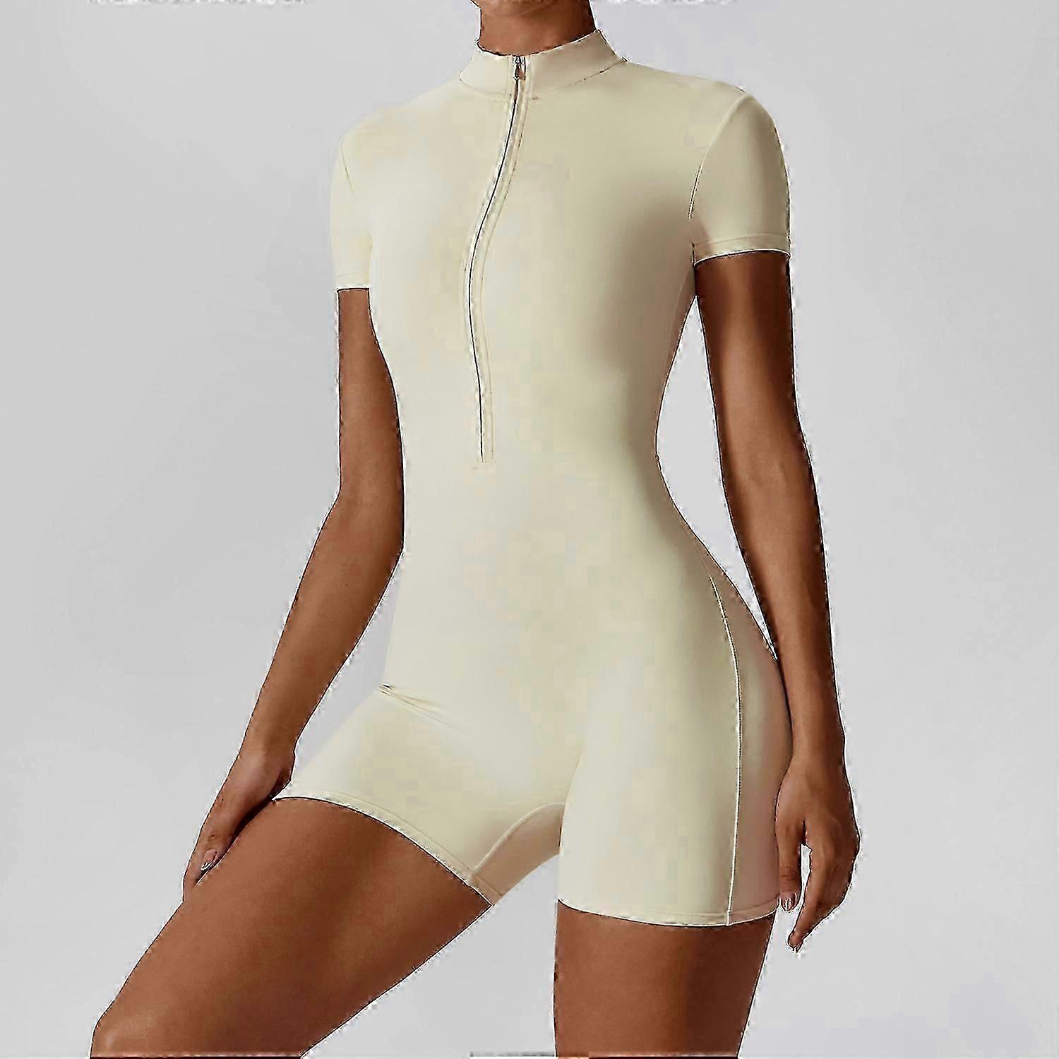 About this item - High-quality material: 78% nylon + 22% elastane, seamless construction, soft and stretchy fabric, four-way stretch, opaque. - Features: Short sleeves, front zipper closure for adjustable coverage, slim fit, one-piece design, solid color, thumb holes. - Elastic, form-fitting design suitable for a range of body types. The four-way stretch fabric moves with you, contours to your shape, and provides gentle support. - Seamless construction reduces friction and enhances comfort during wear. - Suitable for casual outings, travel, social gatherings, yoga, jogging, gym workouts, and other active or everyday occasions.