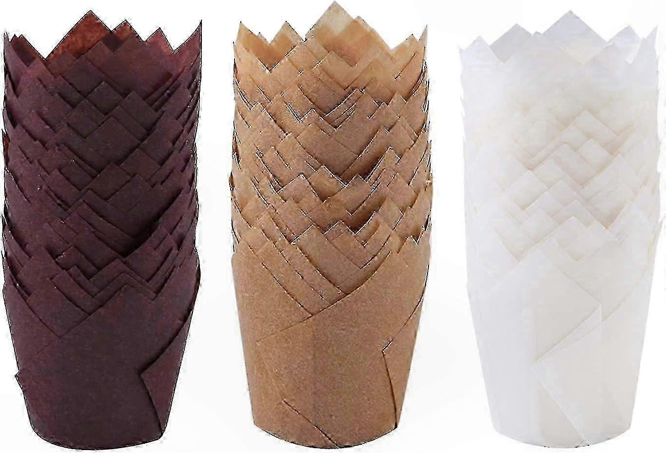 150pcs Tulip Baking Cups, Brown Natural White Cupcake Liners for Wedding Birthday Christmas Baby Shower