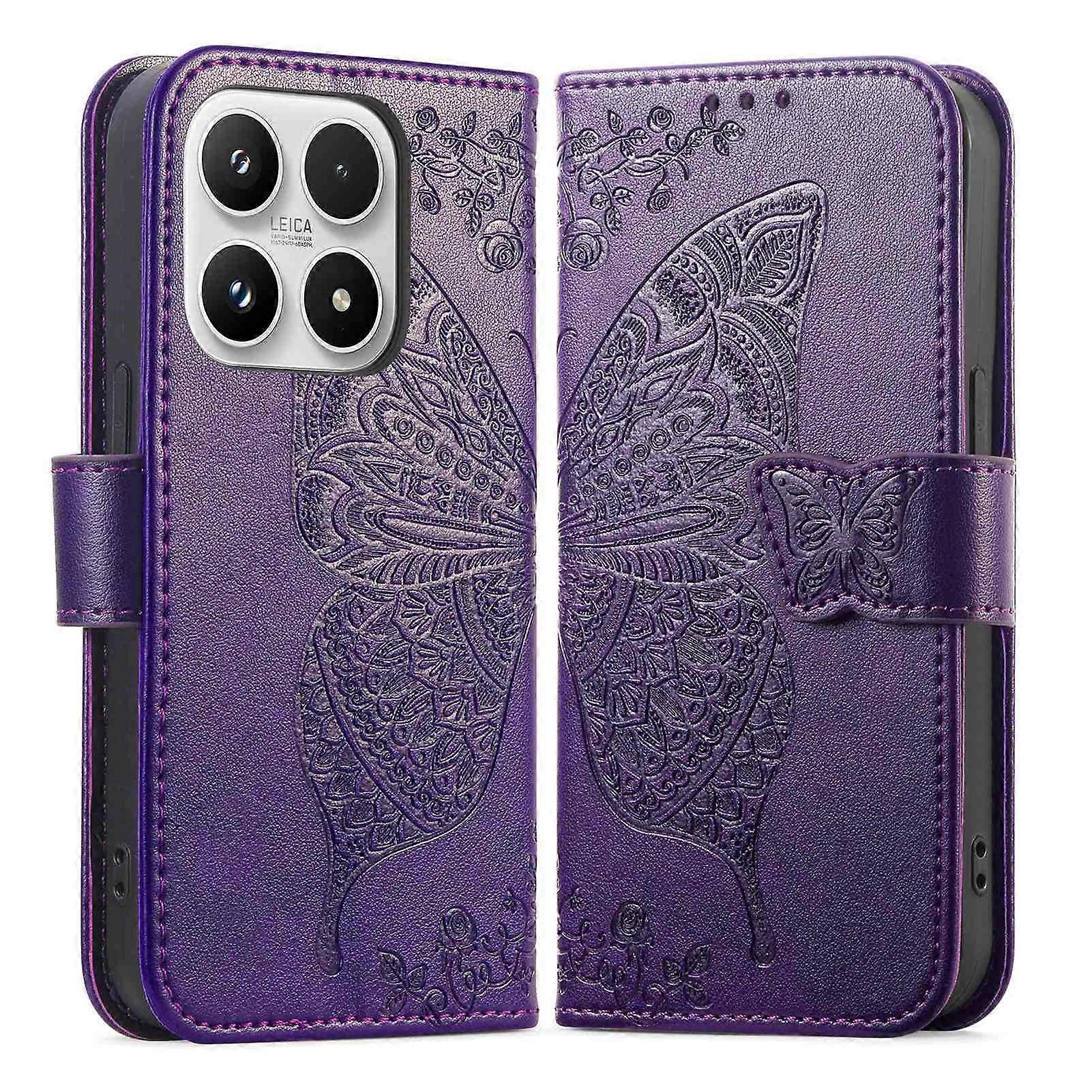 For Xiaomi 17 Case with Strap Butterfly Pattern PU Leather Wallet Phone Cover