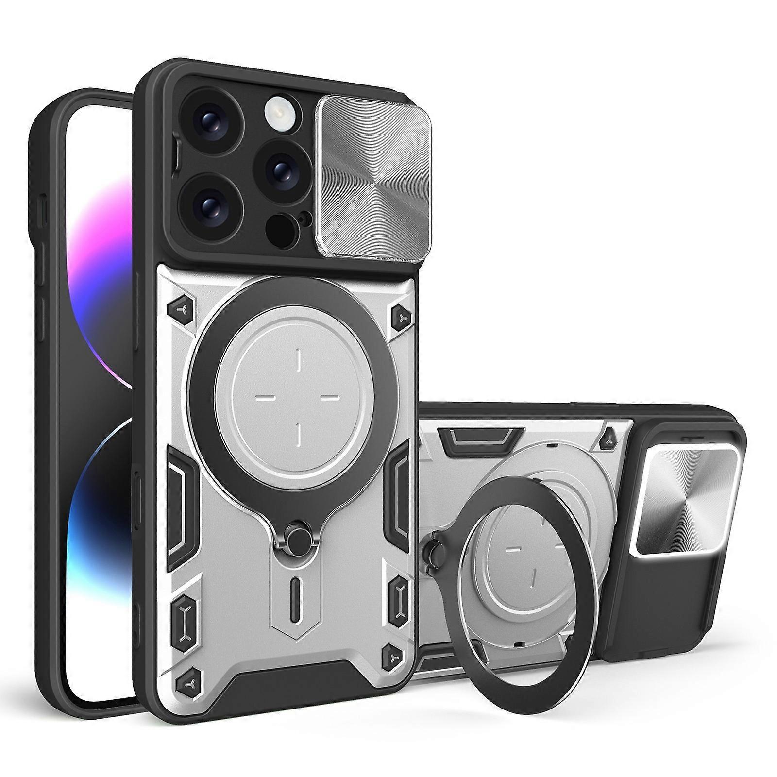 For iPhone 16 Pro Case TPU + PC Phone Cover with Kickstand , Slide Lens Window