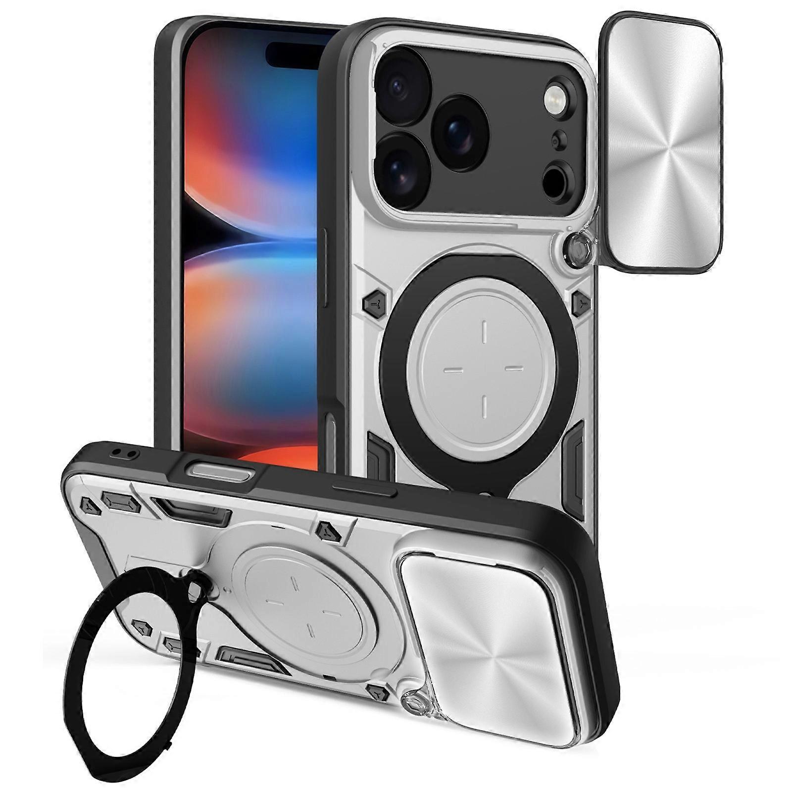 For iPhone 17 Pro Case TPU + PC Phone Cover with Kickstand , Slide Lens Window