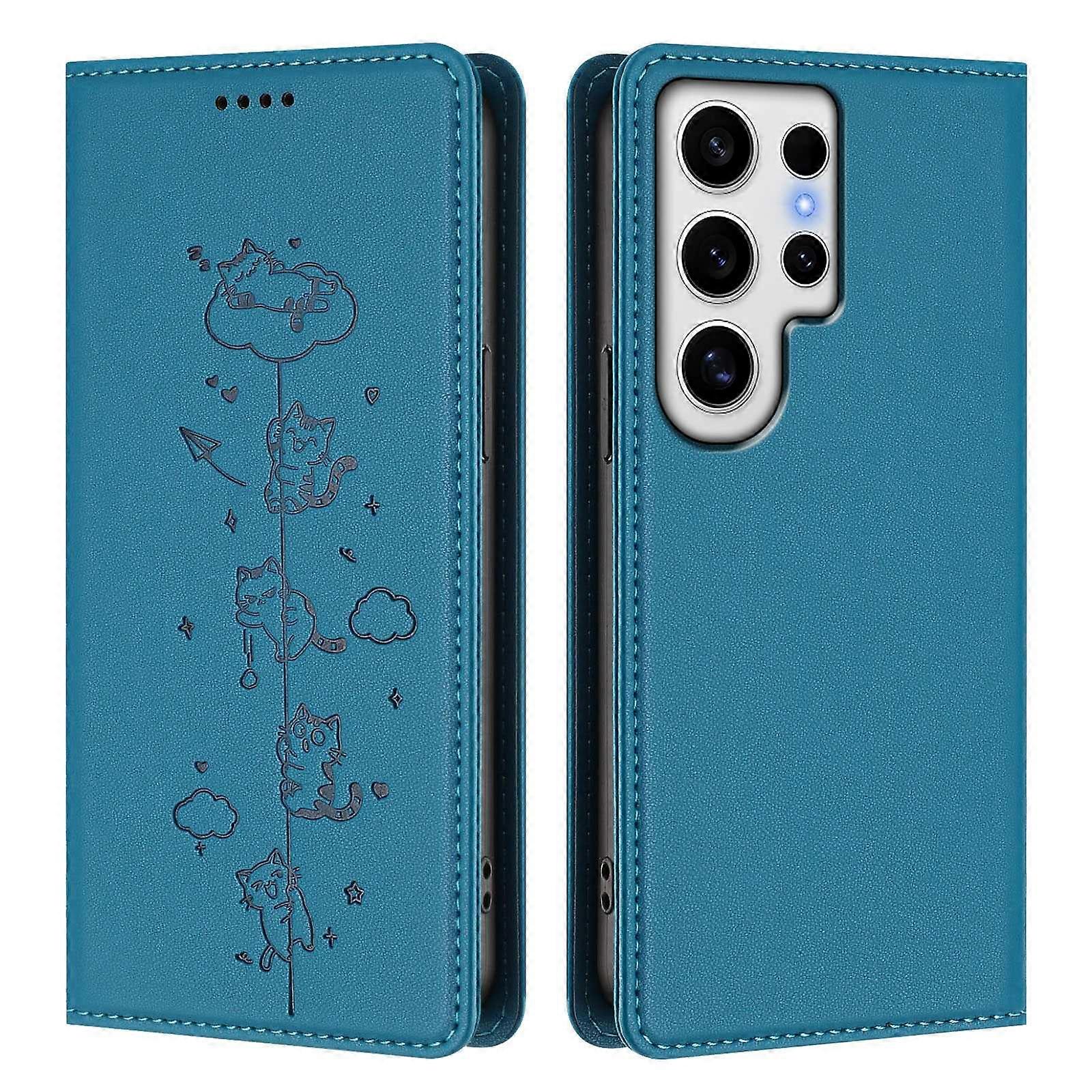 For Samsung Galaxy S24 Ultra Case RFID Blocking Wallet Stand Imprinted Cat Pattern Leather Phone Cov
