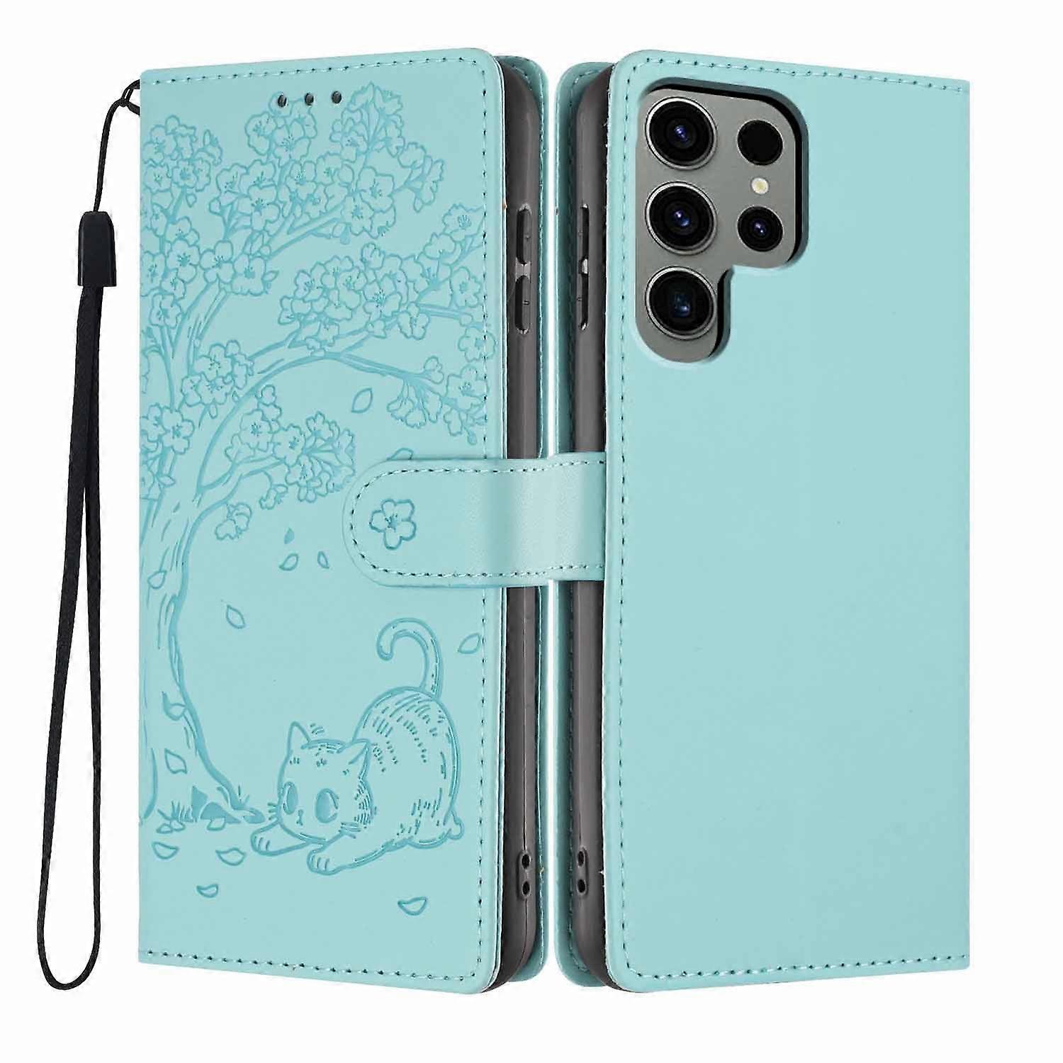 For Samsung Galaxy S24 Ultra Stand Case Tree-and-Cat Pattern PU Leather Wallet Protective Phone Cove