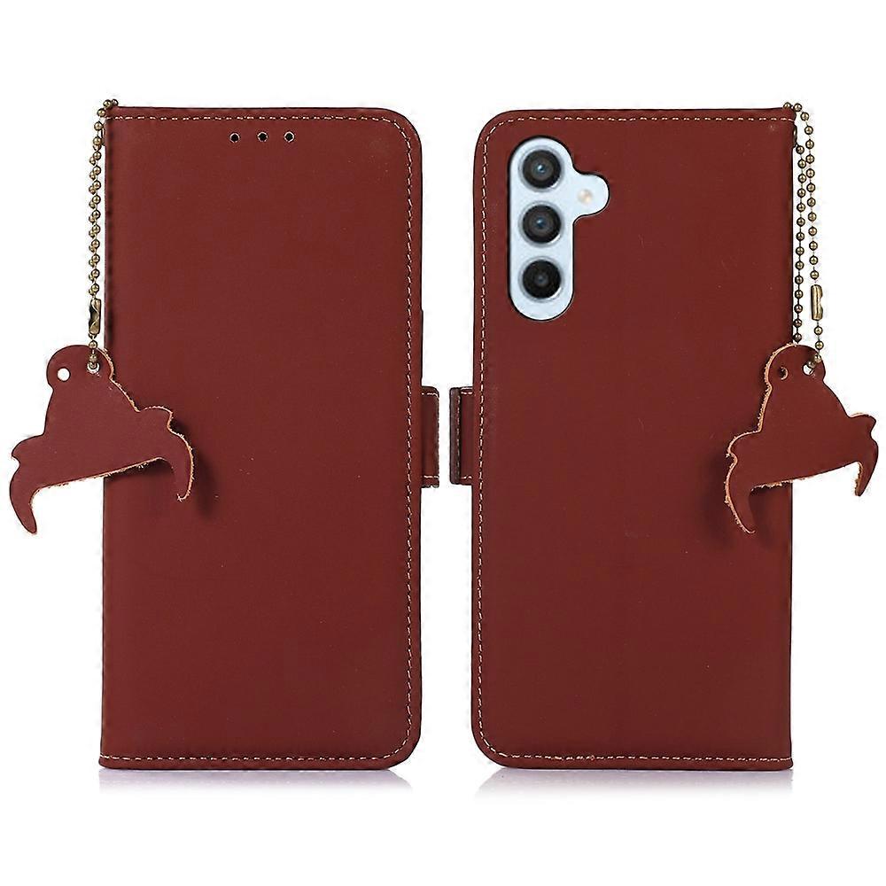 For Samsung Galaxy S26+ Wallet Case Anti-Drop Genuine Cow Leather Phone Cover RFID Blocking