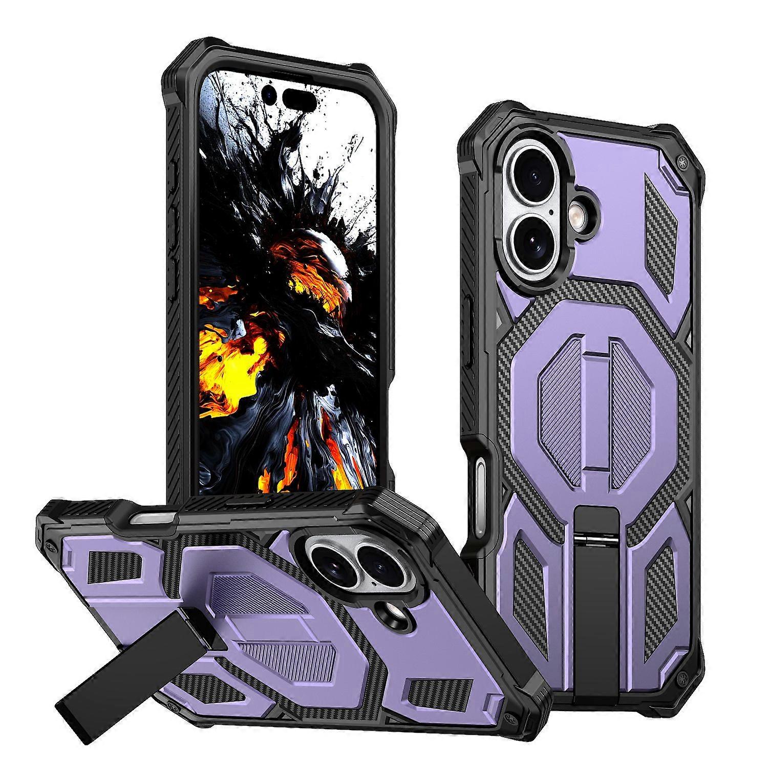 For iPhone 17 Magnetic Case Rotating Kickstand PC + TPU Shockproof Drop-proof Phone Cover