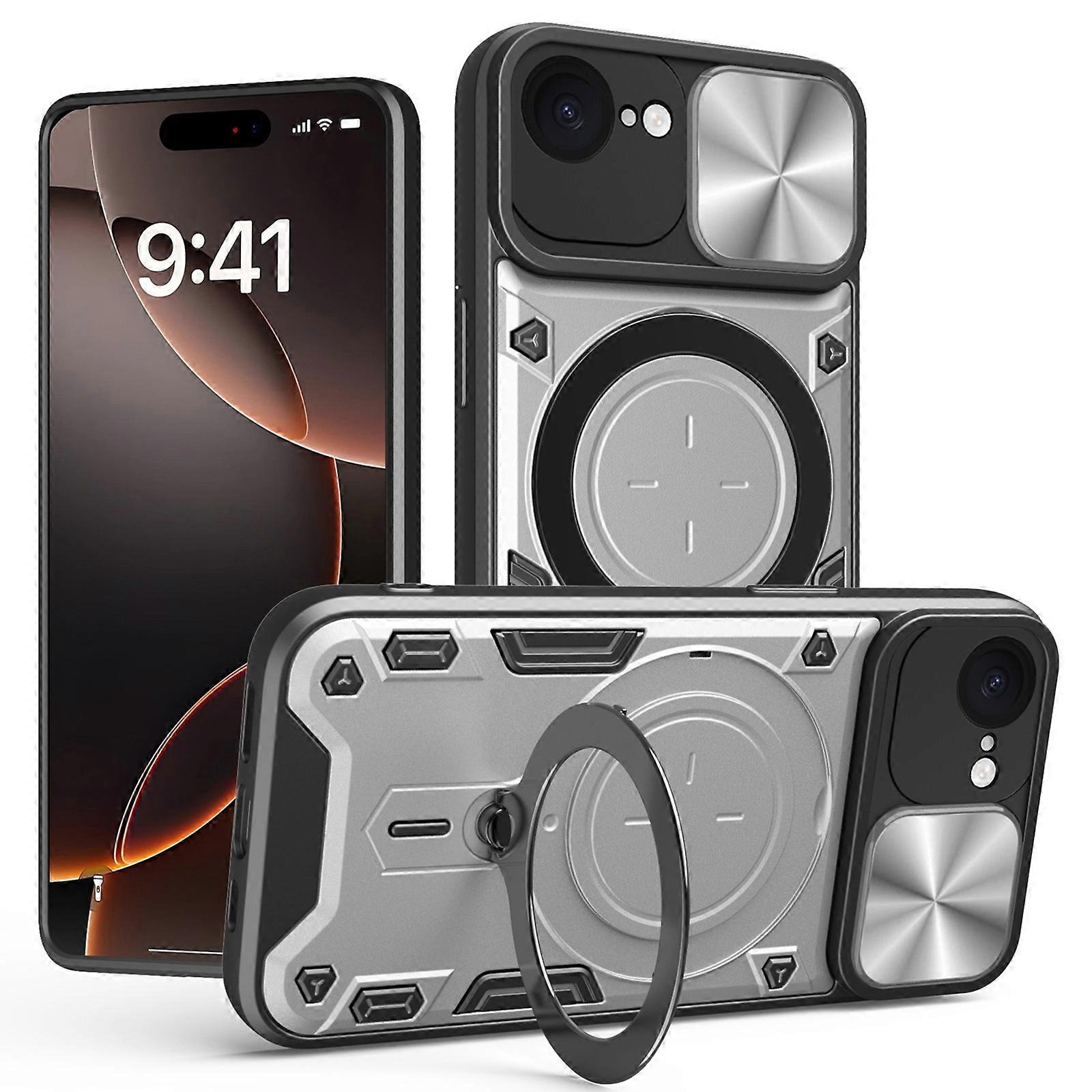 For iPhone 16e Case TPU + PC Phone Cover with Kickstand , Slide Lens Window