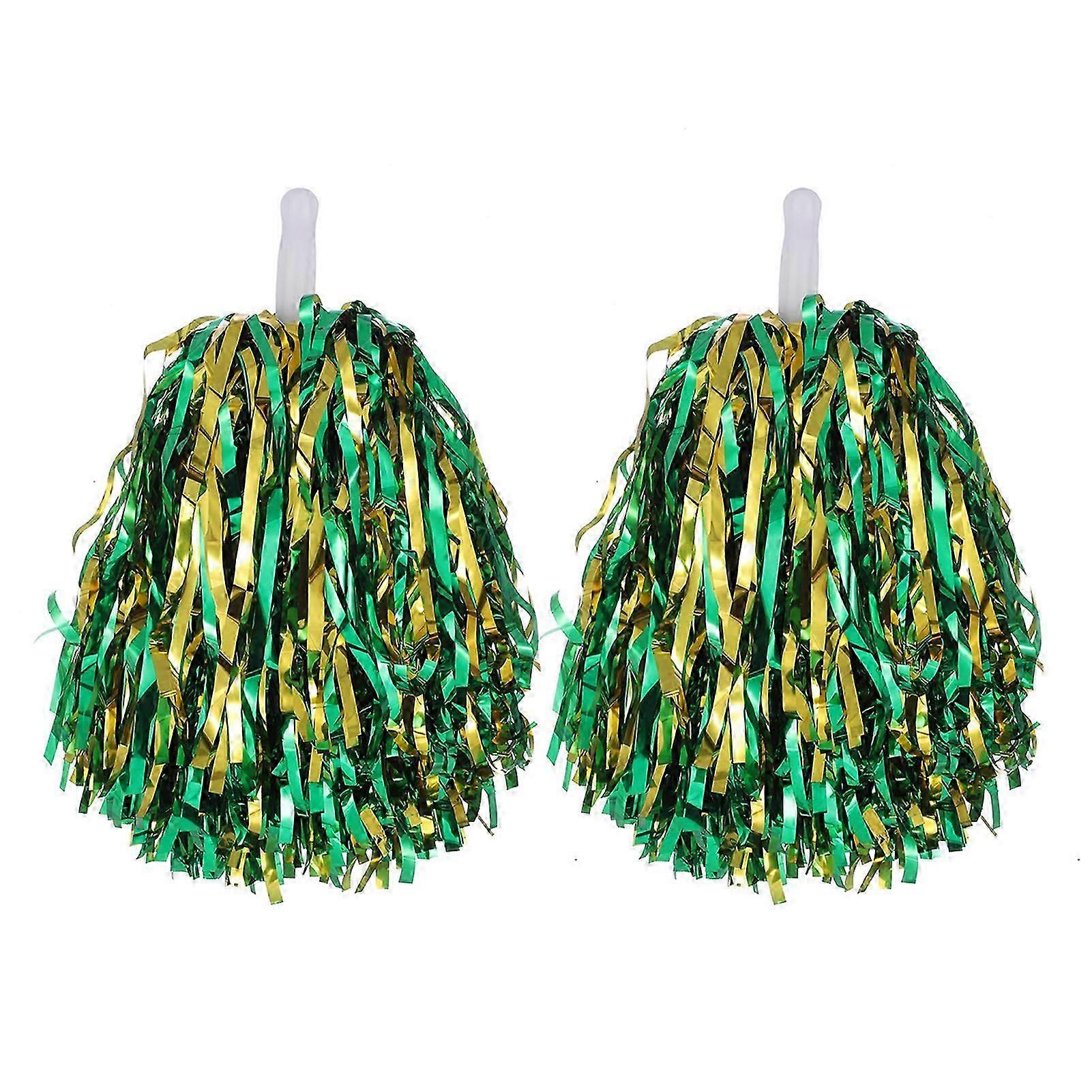 2Pcs Cheerleader Pom Poms Metallic Foil Cheerleader Pom Poms Hand Flowers with Handle for Sports Competitions Celebrations Edition 1229