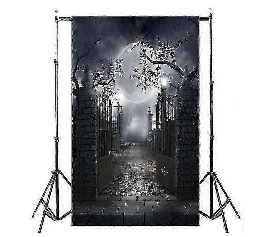 Halloween Night Full Moon Background Dark Wood Cemetery Photography Background Horror Spooky Cemetery Party Banner Halloween Party Decoration Photo