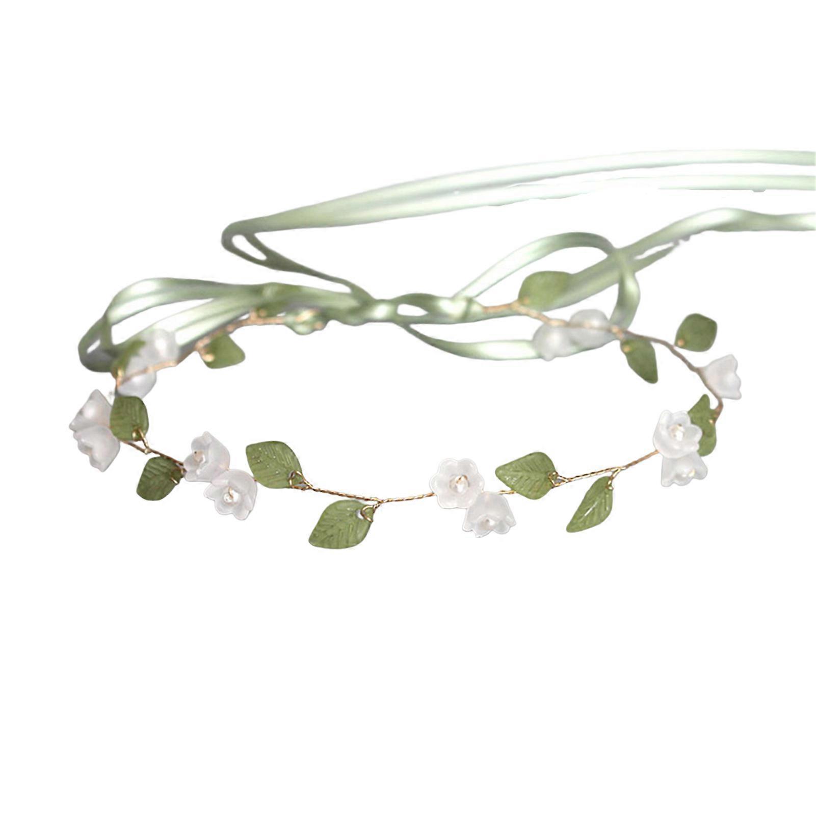 Garland Hair Band Adjustable Convallaria Flower Hairband Flower Leaf Lace-up Crystal Headwear For School Stage Proformance Prop