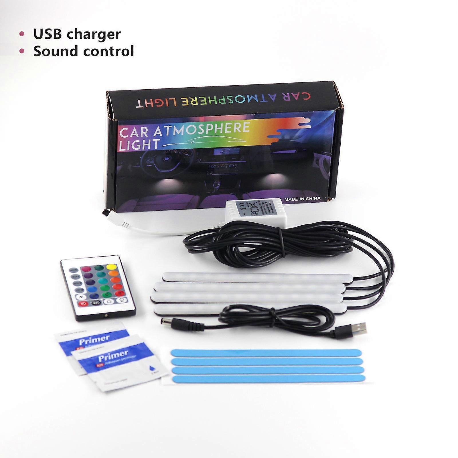 Car LED Footwell Ambient Lights, RGB Music Sound Activated, 7 Colors Interior Atmosphere Lighting with 1-to-4 Splitter Decor