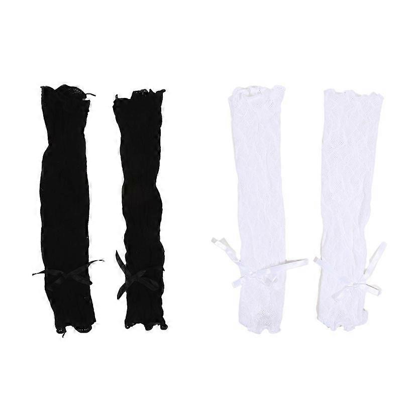 Lace Ruffle Gloves Fingerless Gloves Mittens JK Lolita Kawaii Women Mesh Fishnet Bowknot Black White Gloves