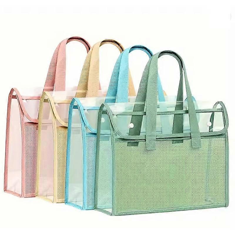 1/4Pc Large Capacity PVC File Bag Transparent Waterproof Handheld Folder A4 Portable Expandable Hand-held File Bag Multipurpose