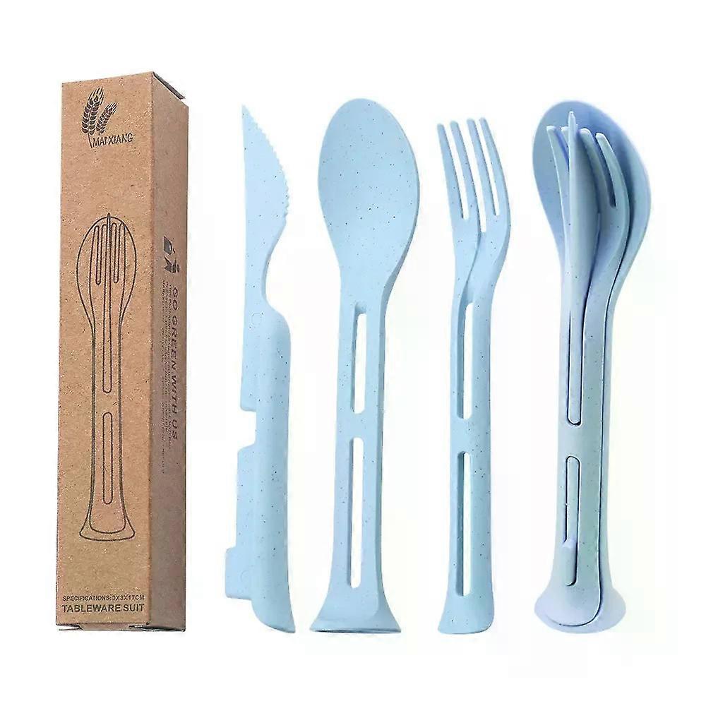1 Sets Wheat Straw Portable Knife, Fork, Spoon Set for Home Outdoor Fresh Three Piece Set for Travel Folding Wheat Tableware
