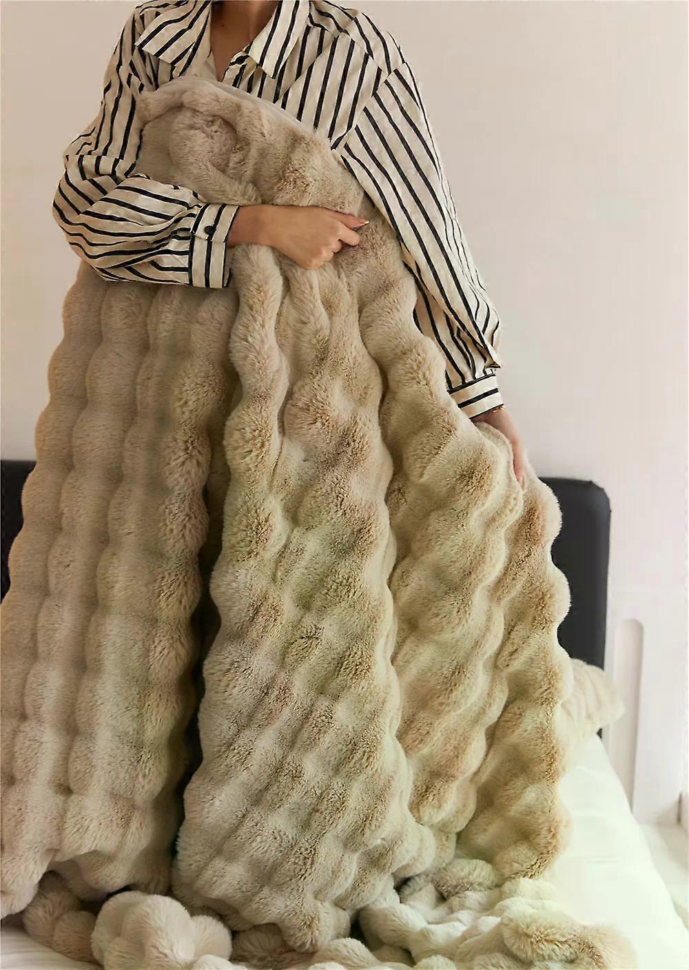 All Season Super Soft Cozy Rabbit Faux Fur Blanket Bubble Blanket for Bed or Couch,Standard Autumn and Winter Fluffy Blankets
