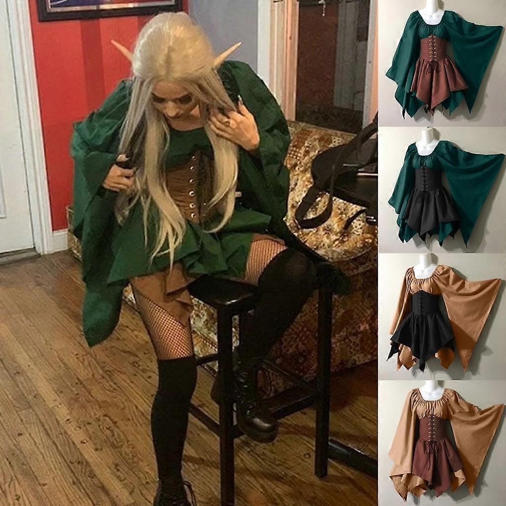 Halloween Costume For Women Medieval Cosplay Costumes Gothic Retro Long Sleeve Corset Dress