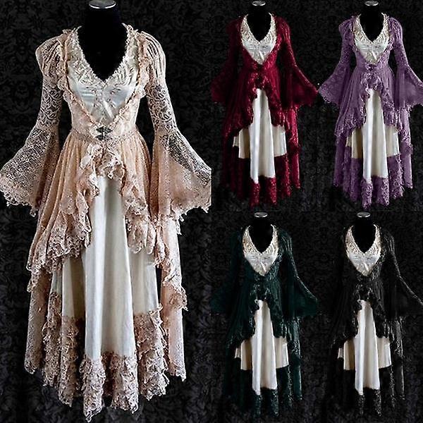 Women's Retro Fashion Victorian Romantic Lace Gown Trim Dress Halloween Cosplay Elven Wedding Dress