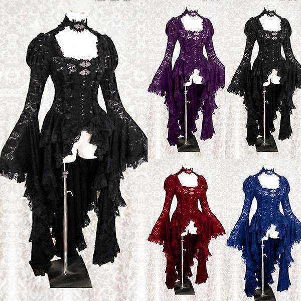 Women Long Bell Sleeve Cosplay Dress Gothic Style Asymmetrical Dress Lace Halloween Cosplay Dress