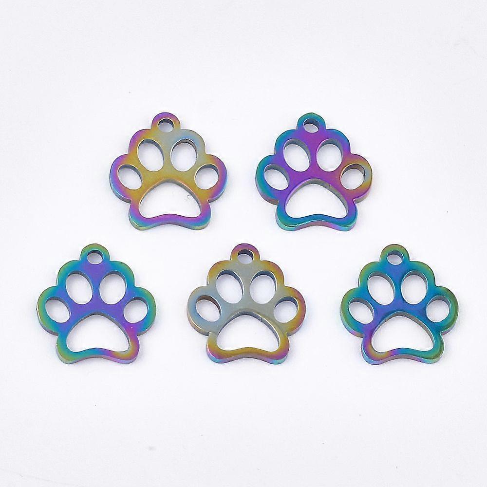 Ion Plating(IP) 201 Stainless Steel Pet Charms Dog Paw Prints Rainbow color 13x12x1mm Hole: 1.5mm.