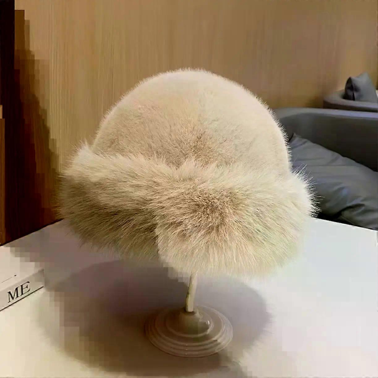 Womens Winter Warm Plush Fisherman Bucket Hat Fluffy Fur Thicken Cold Snowy Day Panama Cap Earflap Hat for Women