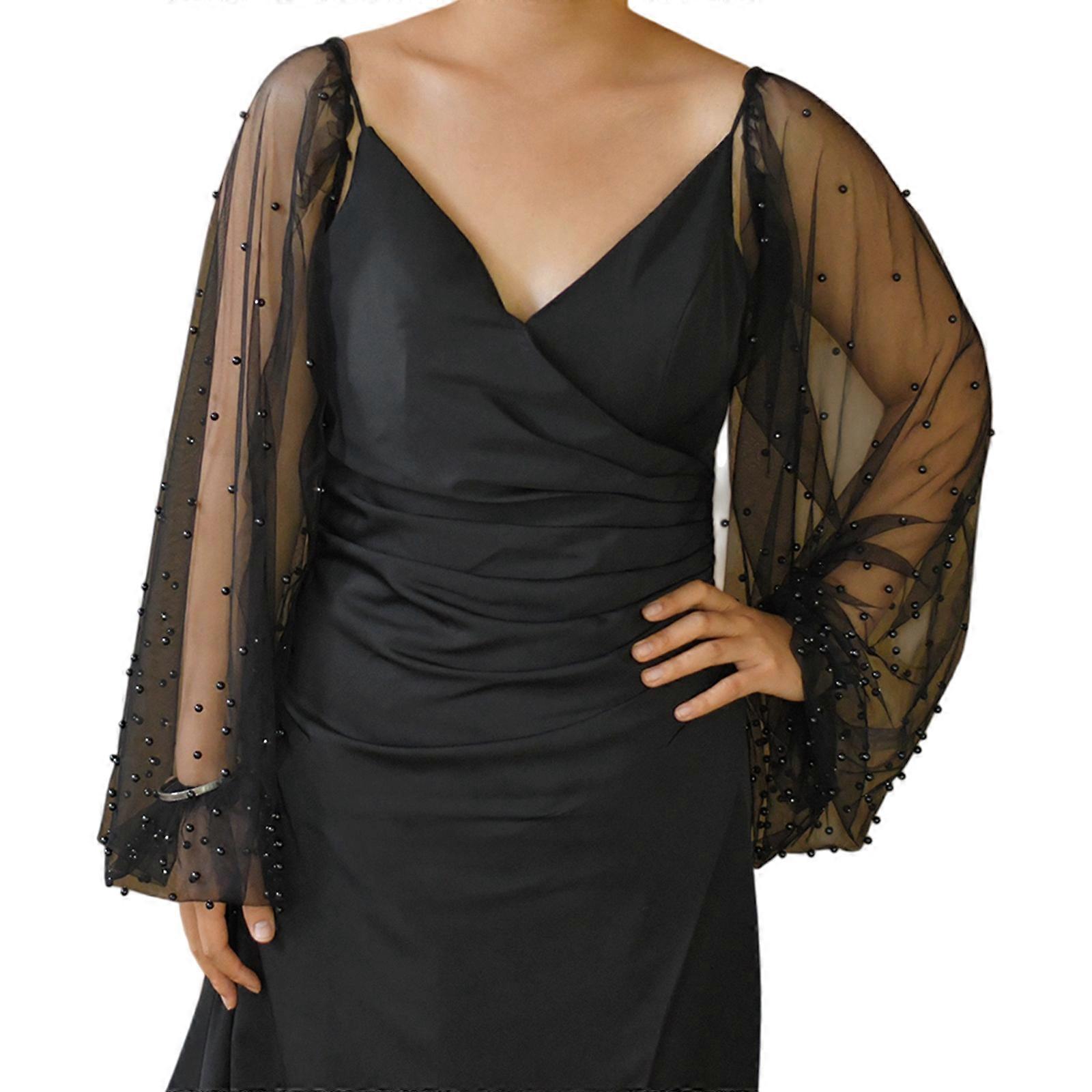 Elegant Pearls Net Bridal Arm Cover Soft Jeweled Arm Sleeves for Wedding Bride Simple White Tulle Accessories Black