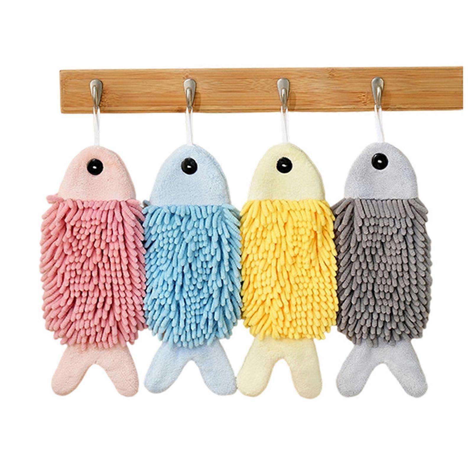 Super Absorbent Daily Use: These hand towels are made to quickly absorb moisture from hands and surfaces, helping keep sinks dry and clean while offering reliable performance for everyday kitchen and bathroom routines. Soft Microfiber Material: Crafted from high-quality microfiber, this kitchen hand towel feels gentle on skin while delivering strong water absorption, drying faster than ordinary fabrics and remaining comfortable for frequent household use. Practical Hanging Loop Design: Designed with a convenient hanging loop, these hand towels for bathroom and kitchen spaces stay neatly stored, dry faster between uses, and remain easy to reach near sinks or counters. Cute Fish Shaped Style: The playful fish-shaped design adds a decorative touch to kitchens and bathrooms, making these hand towels both functional and visually appealing for modern, family-friendly home environments. Versatile Value Pack Option: Suitable for kitchens, bathrooms, and guest areas, these hand towels offer long-lasting durability and easy care, making them a practical choice for daily cleaning or thoughtful household gifts. Item Name: Hand Towel Material: Microfiber Features: with Hanging Loop, Super Absorbent, Fish-Shaped Size Details: L: 35cm/13.78", W: 15cm/5.91" (Approx.) Notes: Due to the light and screen setting difference, the item's color may be slightly different from the pictures. Please allow slight dimension difference due to different manual measurement. Package Includes: Pink,Yellow,Grey,Blue: 1 x Hand Towel or Mix Color: 4 x Hand Towels