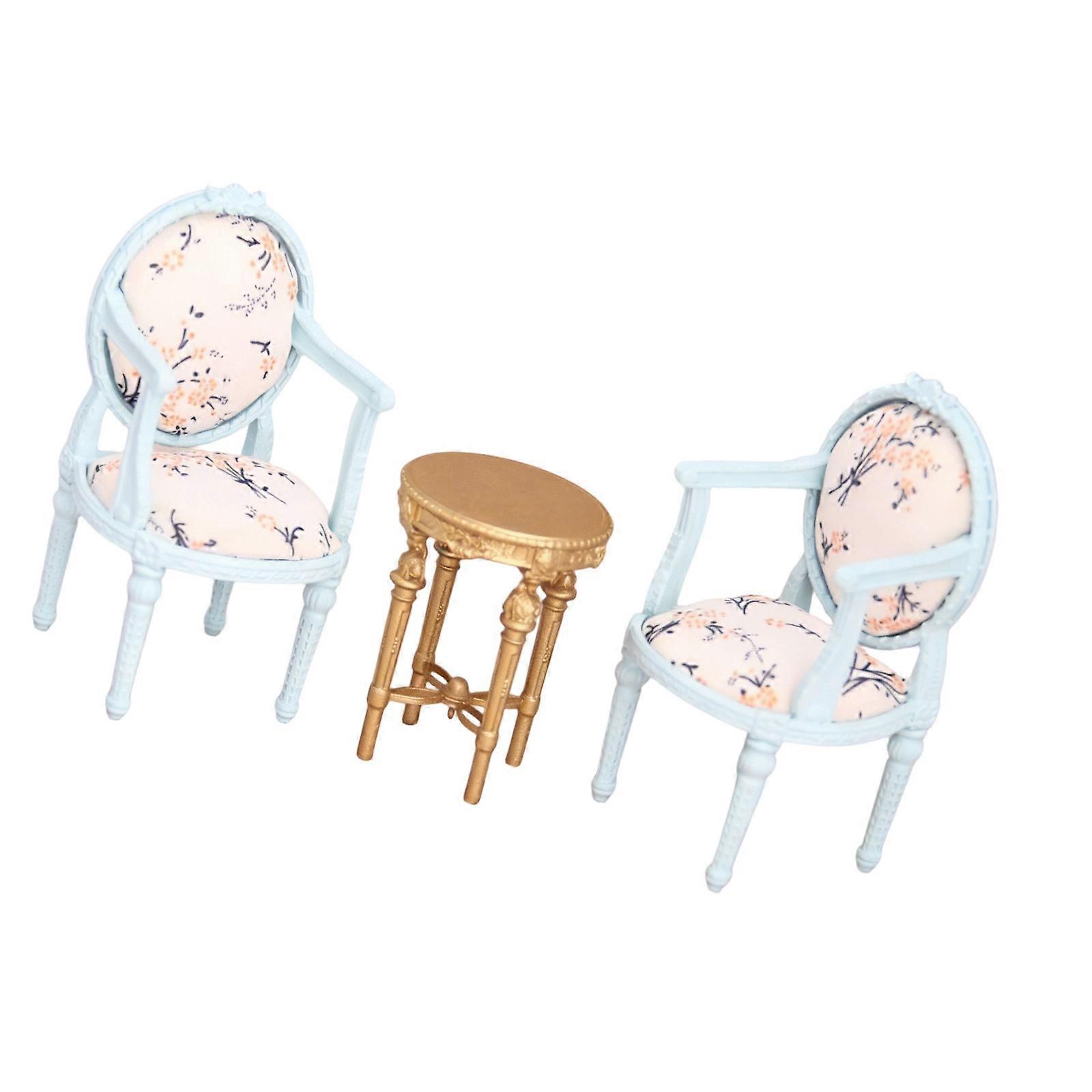 1/12 Scale Dollhouses Mini Table And Chair Set Realistic Design Safe For Children Blue Set