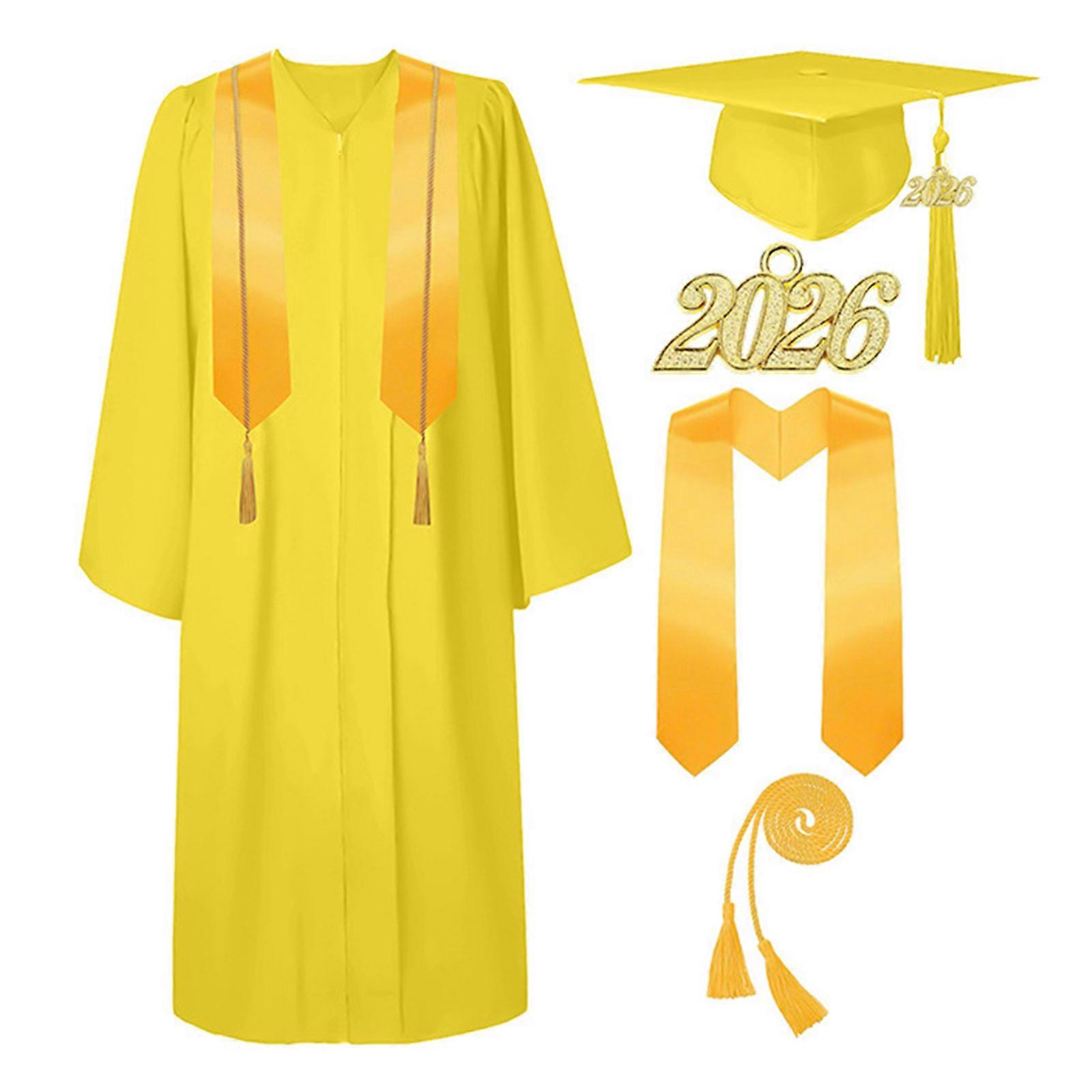 4Pcs Adult Graduation Caps Gowns with Tassels Set 2026 for College Highs School Graduate Graduation gowns caps tassels set Yellow 60 yards