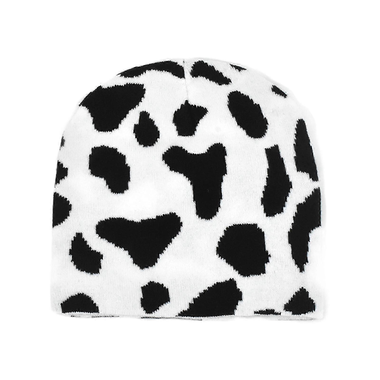 Y2k Knitting Beanie Hat Slouchy Warm Cap Black White Marble Pattern Unisex Accessories