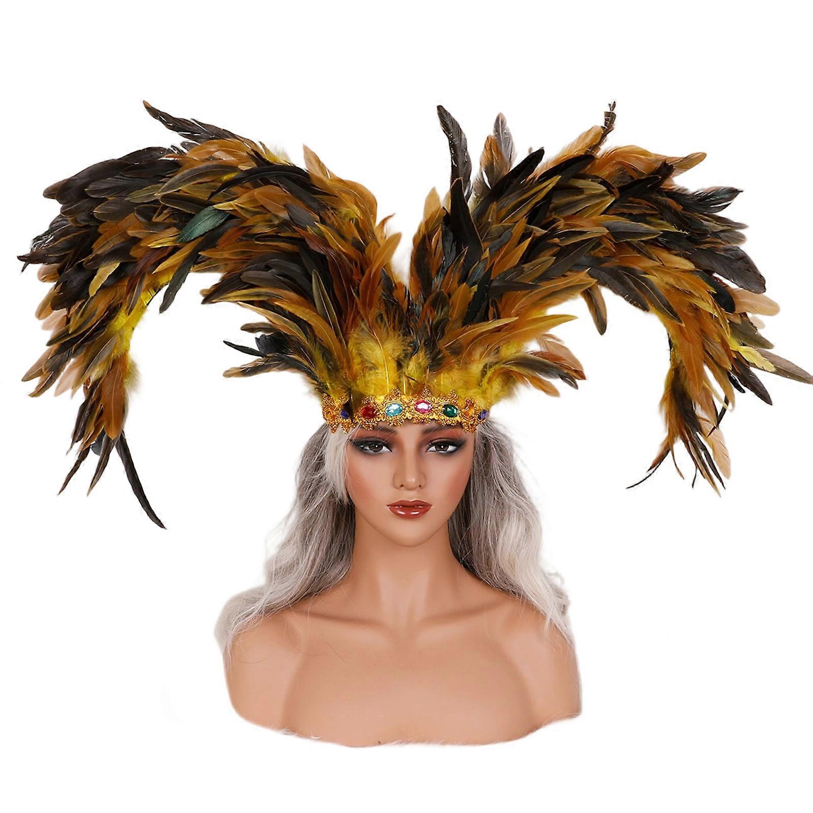 Women's Carnivals Feather Headpieces for Wedding Masquerades Party Cosplay Feather Headbands Yellow
