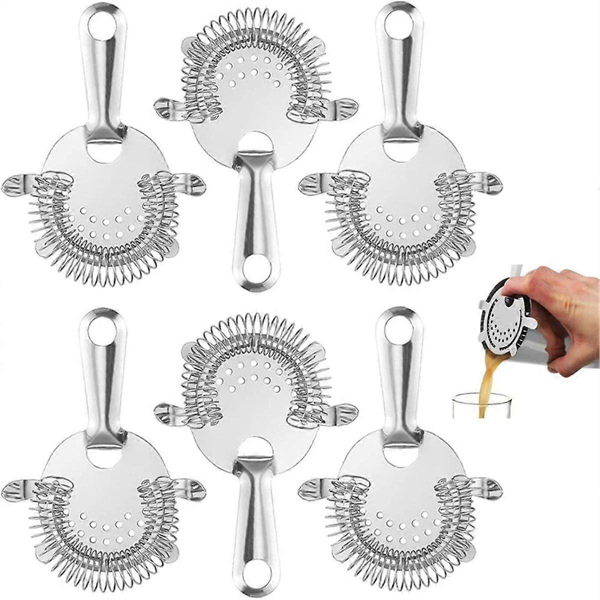 PREMIUM CONSTRUCTION: Made of high-quality stainless steel for long-lasting durability and resistance VERSATILE DESIGN: 4-prong spring mechanism ensures secure fit on mixing glasses and shaker tins for precise straining PROFESSIONAL GRADE: Fine mesh strainer effectively filters ice chips, fruit pulp, and other solids from cocktails ERGONOMIC HANDLE: Comfortable grip design reduces hand fatigue during busy service or extended home bar sessions PERFECT SIZE: Ideal dimensions for both home and professional use, fits standard mixing glasses and cocktail shakers Elevate your home bartending game with this professional-grade 4-prong cocktail strainer. Crafted from stainless steel, this essential bar tool ensures smooth, perfectly strained drinks every time. The classic design features four prongs that securely grip your mixing glass or shaker, while the tight coil spring effectively filters out ice chips, fruit pulp, and other solid ingredients. Whether you're crafting classic cocktails or innovative mixed drinks, this versatile strainer helps achieve that clean, professional finish that distinguishes a well-made cocktail. Its robust construction stands up to frequent use, while the polished stainless steel is easy to clean and maintain. An indispensable addition to any home bar setup, this strainer helps you create restaurant-quality drinks with confidence and style. Color: Silver Material: Stainless Steel Package Contents: 6*4-Prong Cocktail Strainer Only the above package content, other products are not included. Note: Light reflection and different displays may cause the color of the item in the picture a little different from the real thing. The measurement allowed error is +/- 1-3cm.