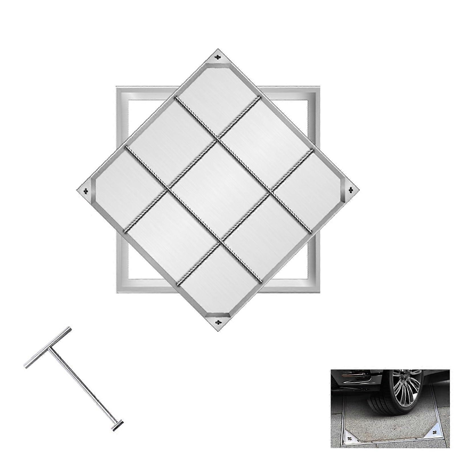 Stainless Steel Manhole Cover Heavy Duty Invisible Sewer Lid with Frame for Driveway 60x60cm