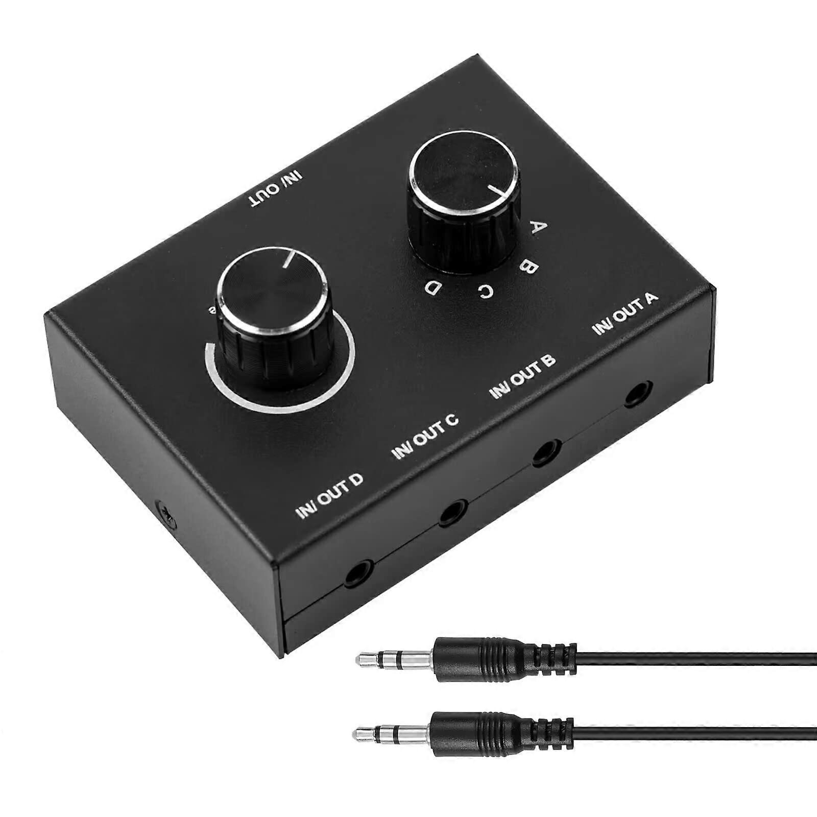 3.5mm 4 Port Audio Switcher with Stereo AUX Splitter for Headphone and Speaker Selector