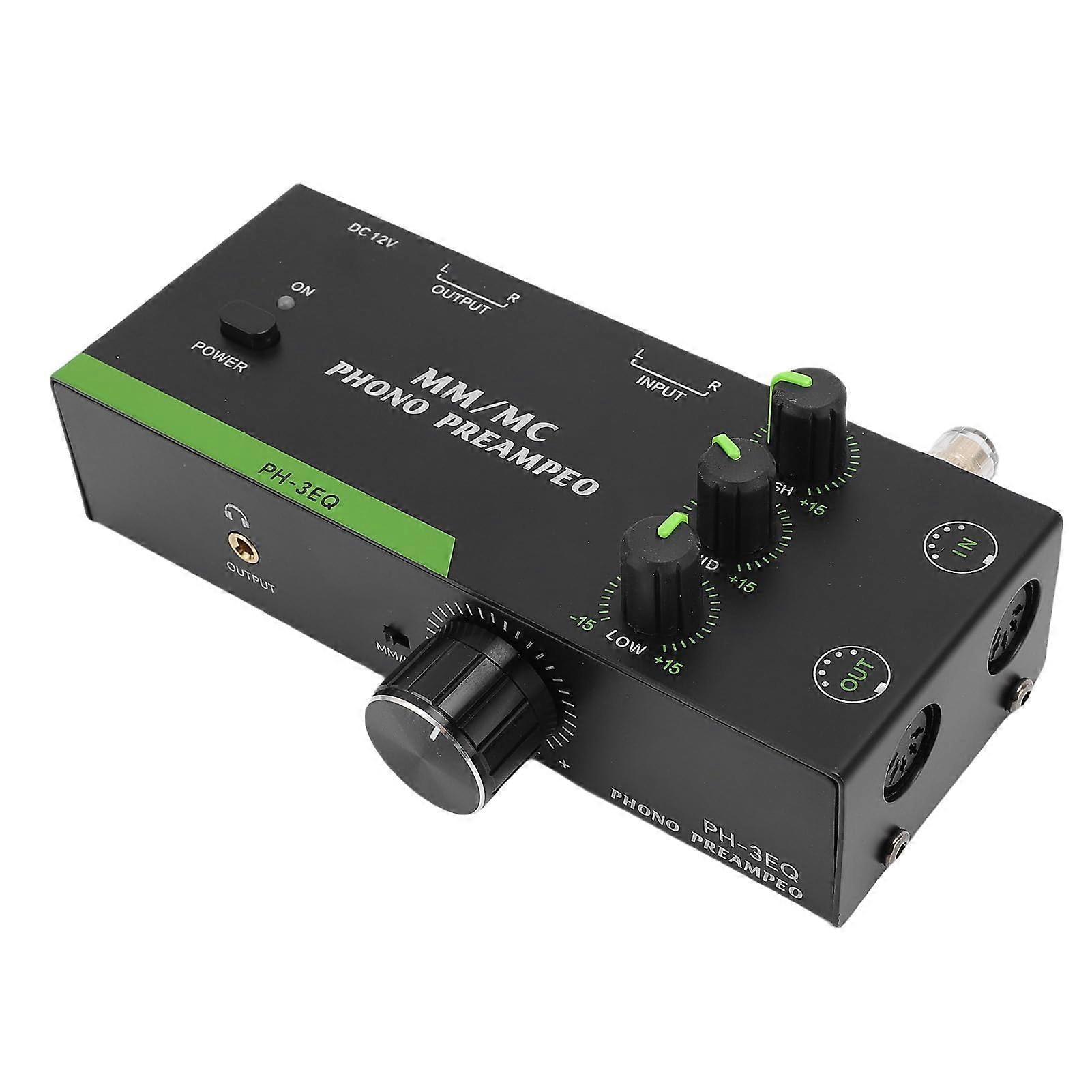 Pure and Balanced Sound Enhancement Achieve exceptional audio quality with this phono turntable preamp. Designed to accurately capture subtle sound signals from your cartridge, it applies precise equalization to recreate the rich tonal depth of your vinyl records. This ensures every note is clear, detailed, and true to the original recording, preserving the authentic character of your collection. 3 Band Equalization for Customized Listening Finetune your music to suit your preference with independent , mid, and low frequency controls. The 3 band equalizer allows you to shape the sound exactly as you like, whether you prefer crisp highs, warm mids, or deep bass. Adjusting your audio is quick and intuitive, giving you complete control over your listening experience. Versatile Connectivity Options Easily integrate this preamp into your existing setup with the builtin 3.5mm headphone jack. Whether you connect headphones for listening or feed the signal into an amplifier, the multiple connection options make it straightforward to use with a variety of devices, offering convenience for different listening environments. Reliable 5 Pin XLR Input and Output For professionalgrade sound transfer, the 5 pin XLR input and output deliver stable, interference signal paths. This ensures clear, detailed audio reproduction, making it an choice for both home audiophiles and professional sound setups. Practical Applications 1. Ideal for vinyl enthusiasts who want to maintain the original warmth and detail of their records while having the flexibility to adjust sound characteristics. 2. Suitable for integration into home audio systems where precise sound control and stable connectivity are essential. 3. for professional studios requiring accurate signal reproduction from turntable sources with reliable XLR connections. With its precise sound enhancement, equalization, and versatile connectivity, this phono turntable preamp is a dependable choice for delivering quality audio in any listening scenario.