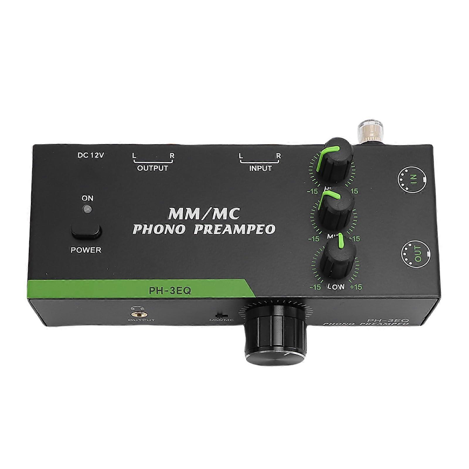 Phono Preamp with 3Band EQ and Headphone Output, Low Noise MM MC Turntable Preamplifier 5Pin XLR