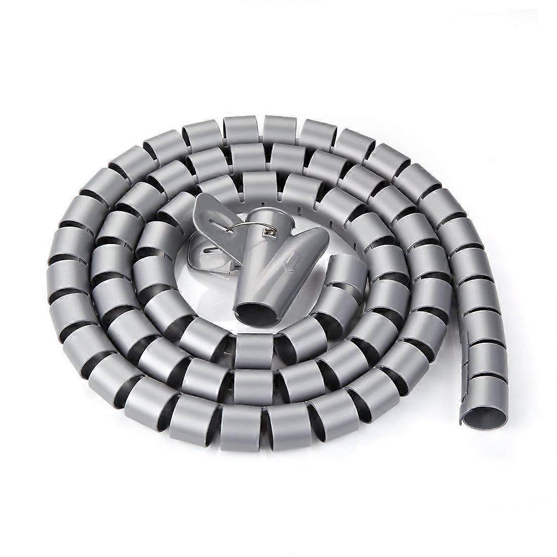Cable Management Sleeve 10mm Flexible Spiral Cable Organizer Grey 5m with Clip for Wires