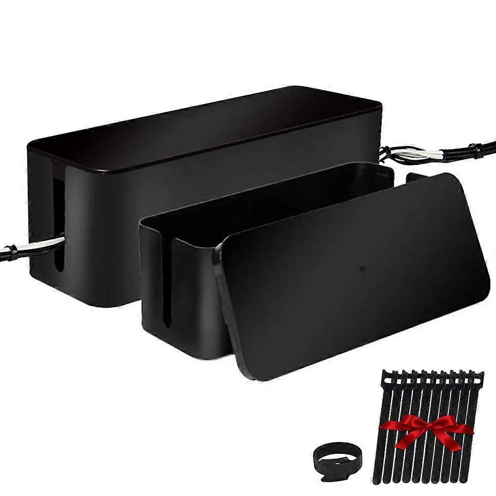 Cable Management Box 2 Set Black, Hidden Power Strip and Cord Organizer for Desk TV Computer