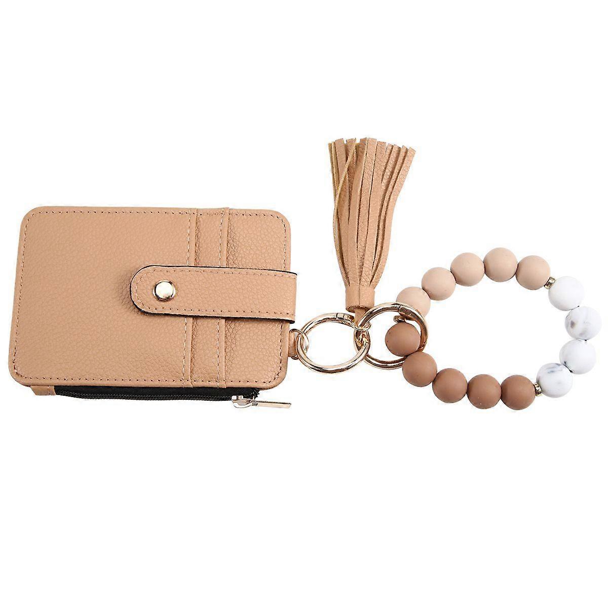 Key Chain Wristlet Bangle Bracelet Keychain Women'S ID Small Change Holder Wallet with Detachable Ke