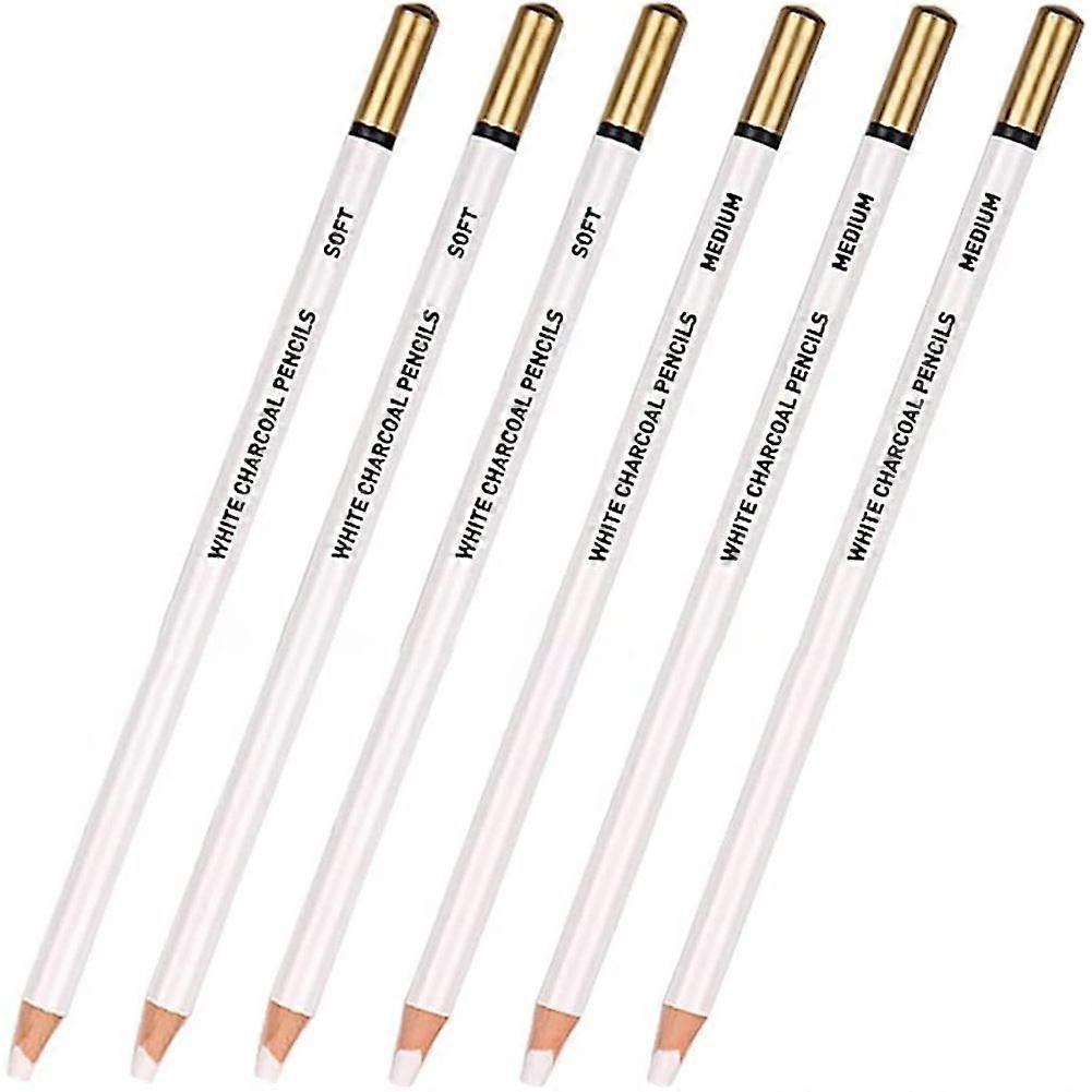 Set of 6 Prmeium White Charcoal Pencils Set 3 Pcs Soft 3 Pcs Sketch Highlight White Pencils for Ideal for Drawing