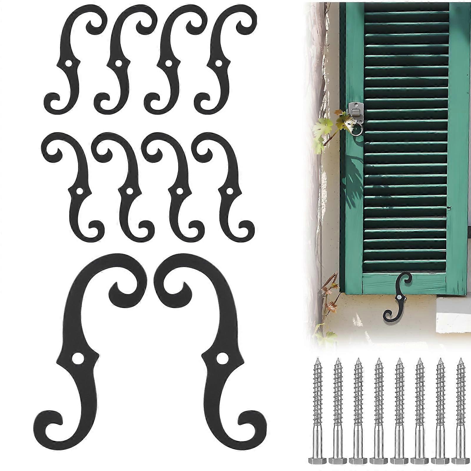 8 Pack S Style Shutter Dogs Exterior Hardware, 6.3in Black Iron Holders with Screws, WeatherResistant
