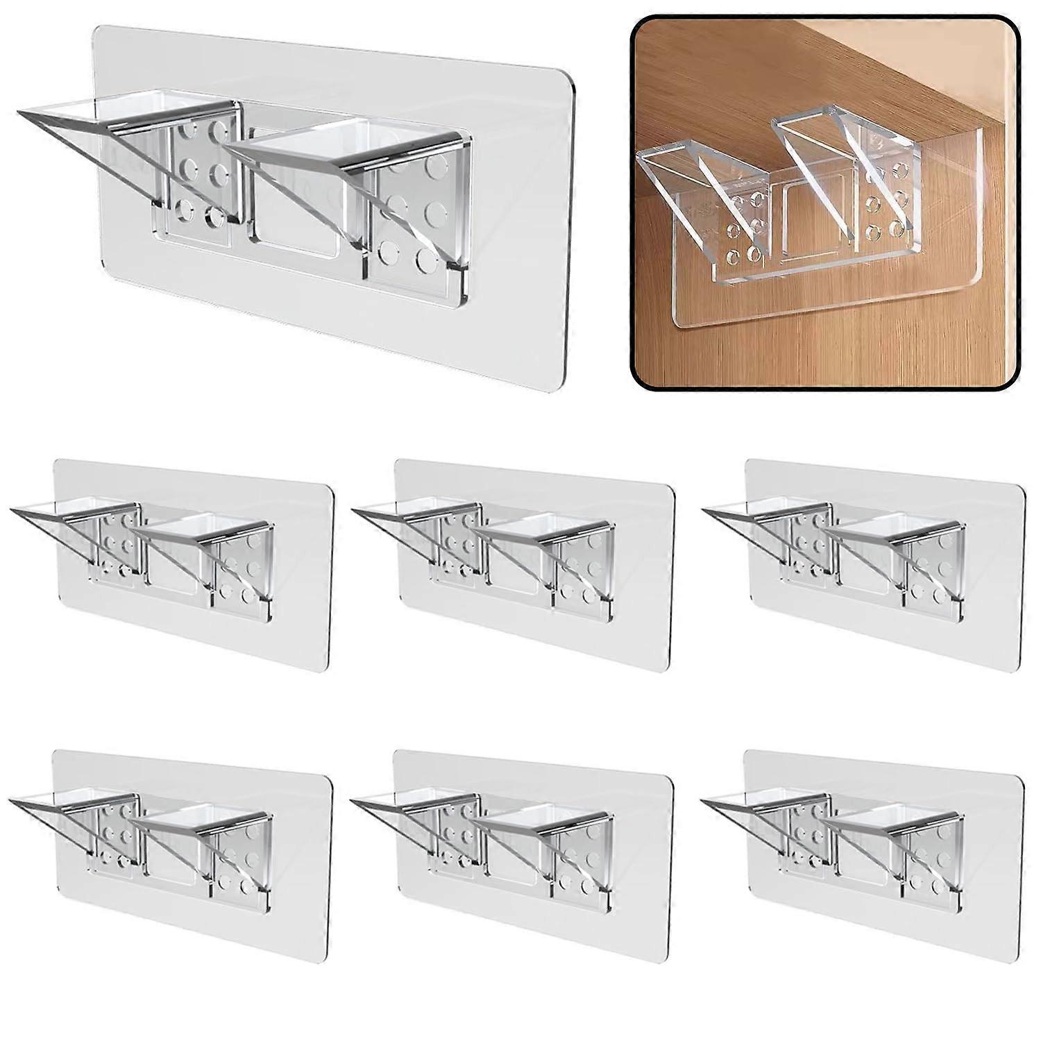 6Pack Heavy Duty Adhesive Shelf Brackets, Large No Drill Dual Row Supports for Cabinets and Closets