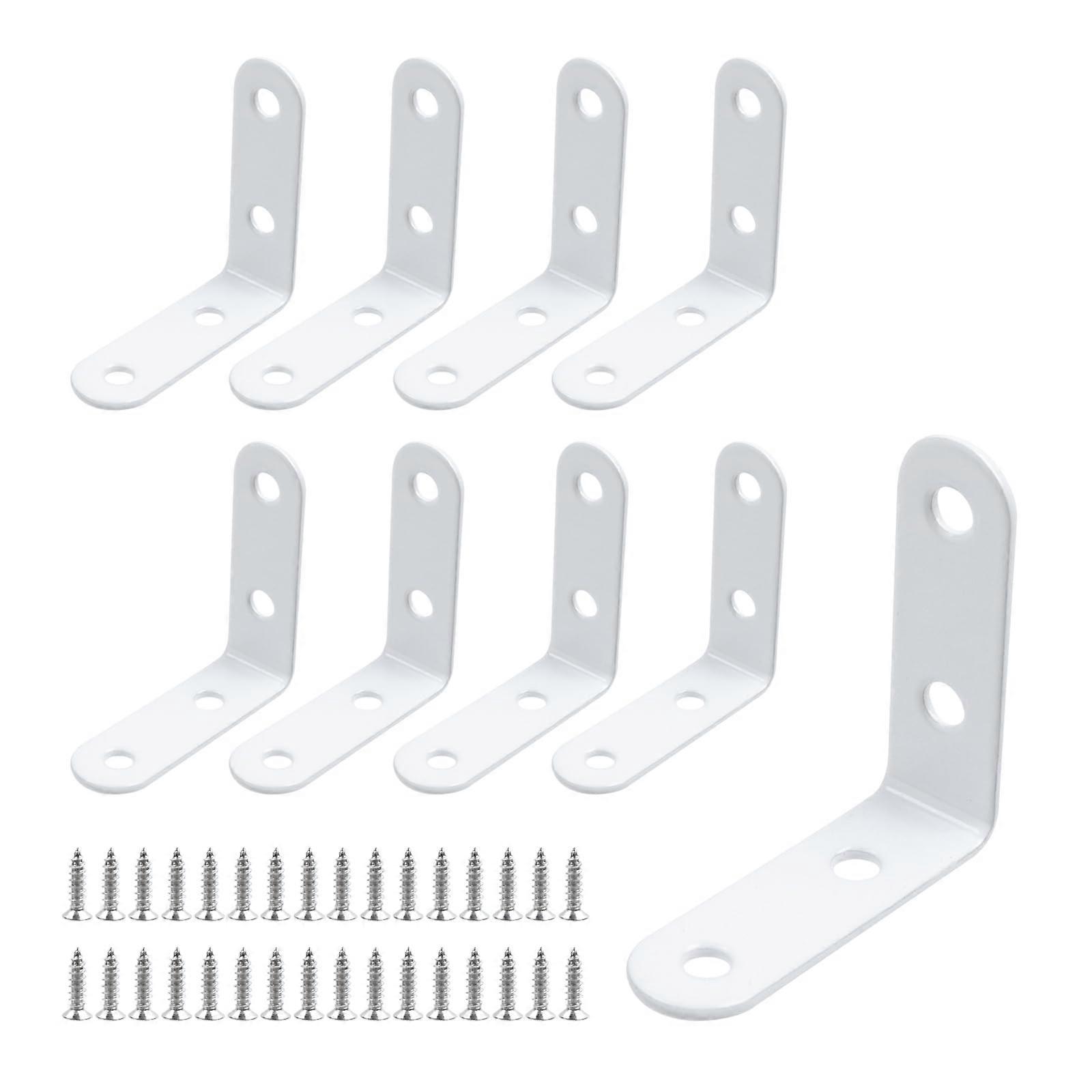 8PCS White 2 Inch L Shelf Brackets Stainless Steel Corner Braces 90° Right Angle Support with Screws