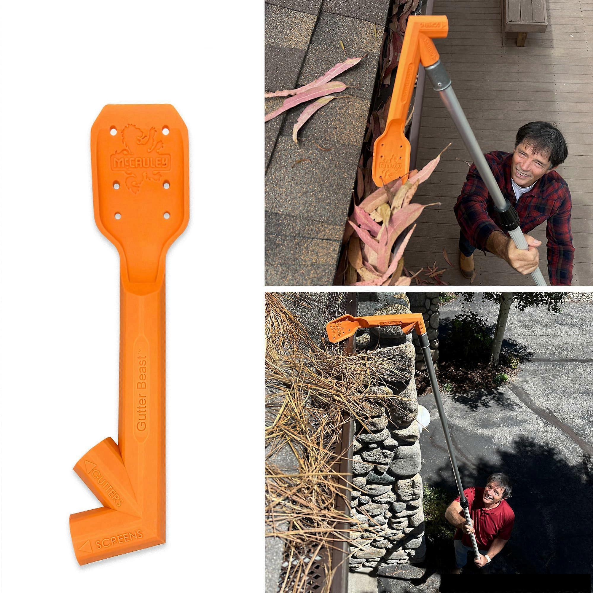 The Gutter Beast is designed to make gutter cleaning faster, safer, and more efficient. Built from thick, durable nylon, it is a single solid piece that combines professionalgrade strength with lightweight, easy handling. Its streamlined design means less hassle and more control, making it ideal for both homeowners and contractors. Key Benefits: Lightweight yet strong construction allows easy maneuverability and reduces arm fatigue during extended use. Onepiece solid design eliminates weak connection points, ensuring lasting reliability. Made from tough nylon resistant to wear, outdoor elements, and heavy use. Userfriendly structure enables quick setup and smooth operation for any skill level. Dual Pole Thread Locations: 1. Clean gutters from the ground or rooftop without direct contact with debris. 2. Sweep leaves and buildup off gutter screens from either ground level or roof level, improving water flow and preventing clogs. Practical Applications: Remove leaves, twigs, and dirt from gutters without climbing ladders, reducing safety risks. Clear gutter guards after storms to maintain effective drainage. Maintain roofline cleanliness and prevent water damage to siding and foundations. Function and Performance: Compatible with standard extension poles for groundlevel use or handheld access on rooftops, the Gutter Beast adapts to multiple working positions. Its ergonomic lightweight build provides precise control over movements, allowing efficient cleaning in tight spaces or along long roof edges. The material's durability ensures consistent results in every season. Whether used for routine maintenance, poststorm cleanup, or seasonal preparations, the Gutter Beast delivers effective gutter and screen cleaning with minimal physical strain and maximum reliability.