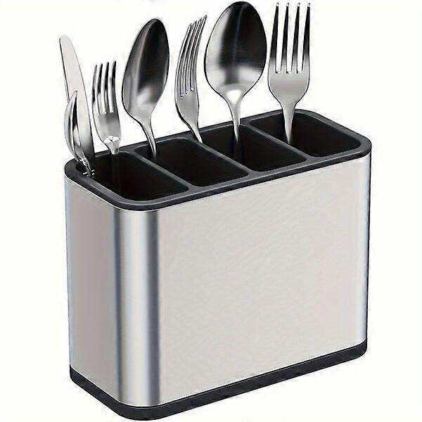Knife and Fork Storage Box with 4 Compartments, Non-slip Base, Stainless Steel Material, Kitchen Utensil Organizer Box