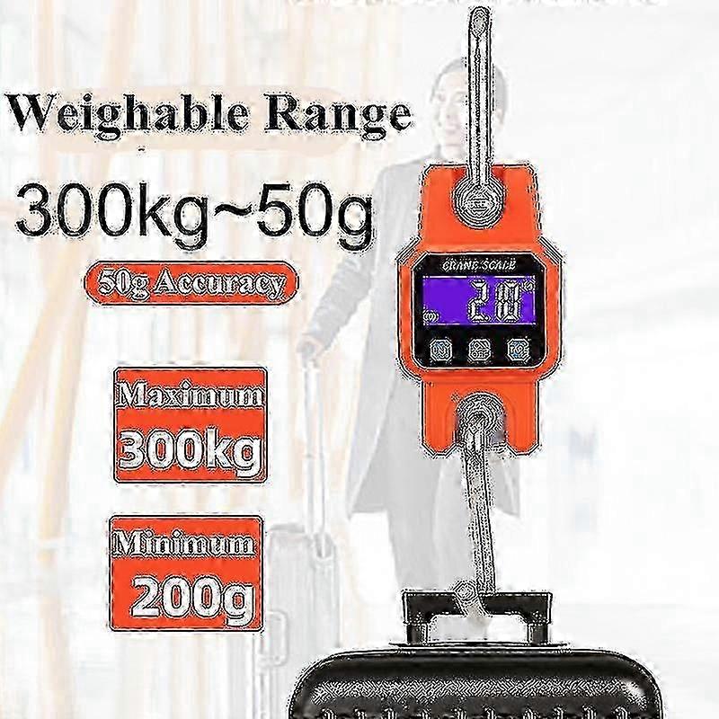 300kg or 50g Bluetooth-Compatible Crane Scale Rechargeable Portable Hanging Industrial Hook Scales Stainle Steel With 4.0 BT USB 50 percent OFF Optional Blue tooth 4.0 function Built-in 400 mAh lithium battery Three functions of charging, plug-in, and AAA battery, super loud buzzer prompt Super long range Full viewing angle LCD High-grade white LED backlight with purple background Bold stainle steel hook, waterproof mask, waterproof ring design at the handle connection High-strength ABS engineering plastic shell, thickened stainle steel environmentally friendly electroplating hardware Industrial-grade materials and workmanship, durable. Specification Shell material: ABS engineering plastic Body size: 7.6 x13.8x3.9cm LCD size: 52 x 23mm Hardware wire diameter: 10 mm Color box size: 17.5x16.7x5.2 cm Unit: kg, lb, vi (Fez) Version: Normal version, Blue tooth version (optional) Color: Black, Orange Range: 300kg or 50g (upper can weigh 300kg, division value 50g, lower can weigh 0.2kg, error 0.1-0.3kg) The functions are: switch, unit or lock, reset and tare, when weighing, the value can be selected manually or automatically, zero tracking, 120 seconds automatic shutdown, unlock function Package included Please scan the code to download the supporting APP (Android or Apple application market search Weiheng Smart APP download) Note: Due to the light and screen setting difference, the item's color may be slightly different from the pictures. Please allow slight dimension difference due to different manual measurement.