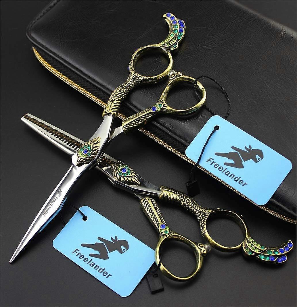 Why choose these professional hair cutting scissors and thinning shears These scissors are tailored for professional hairdressing and precise use. Made with imported Japanese steel and 100 percent handmade, they deliver clean, smooth cuts with minimal effort. The ergonomic, lightweight design and adjustable tension make them comfortable for long sessions and easy to control. Key benefits Precise, snag cutting: razorsharp blades cut hair cleanly without tugging or pulling, reducing split ends and uneven lines. Longlasting sharpness: finely finished edges are sharpened and checked by experienced craftsmen for a durable, reliable edge. Comfortable fit and control: ergonomic handle and removable finger inserts allow a customized grip for better accuracy and less hand fatigue. Easy adjustment and low maintenance: the tension screw lets you fine tune blade movement for smooth operation. Complete kit: includes a dedicated hair cutting scissor, thinning scissor, and a storage bag for safe keeping. Main features Material: Japanese imported steel for edge retention and consistent performance. Construction: 100 percent handmade and professionally polished for a refined cutting surface. Sizes available: 5.5 inch or 6.0 inch overall length options for both hair cutting scissor and thinning shears. Thinning shears: designed to remove bulk and blend hair smoothly. Removable inserts: adapt finger hole size to individual comfort. Lightweight design: reduces wrist strain during extended use. Adjustment screw: simple and precise tension control. What is included 1 hair cutting scissor (5.5 inch or 6.0 inch) 1 hair thinning scissor (5.5 inch or 6.0 inch) 1 scissors storage bag Practical use scenarios Professional salon styling: precision cutting, layering, and finishing for clients who require clean lines and smooth texture. Barbering and detailing: accurate trimming and texturizing for short styles, fades, and tapered cuts. Home hair maintenance: reliable tool for trims and touchups, with comfortable handling for nonprofessionals. Care and safety tips Store scissors in a cool, dry place away from humidity, dust, and cosmetics. Keep blades clean and dry after use to maintain edge quality. These scissors are very sharp. Use with care and keep out of reach of children. Use the removable inserts to ensure a secure, comfortable grip and check the tension screw periodically for performance. Focused on quality and crafted for hairdressing professionals and enthusiasts, these scissors combine precise cutting performance, comfort, and practical versatility.