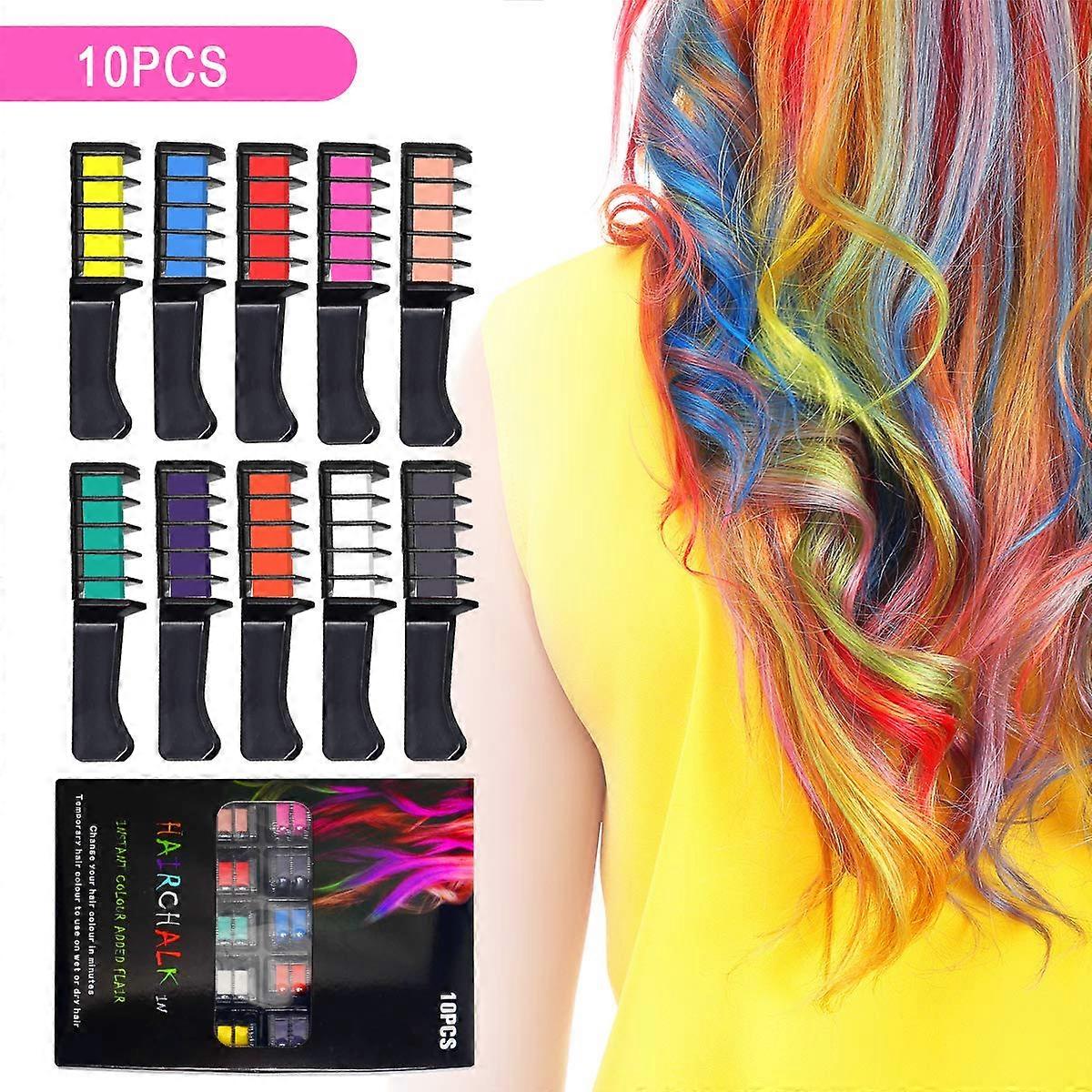 Hair Chalk Comb Set 10 Colors Temporary Hair Color, Washable NonToxic for Kids and Women