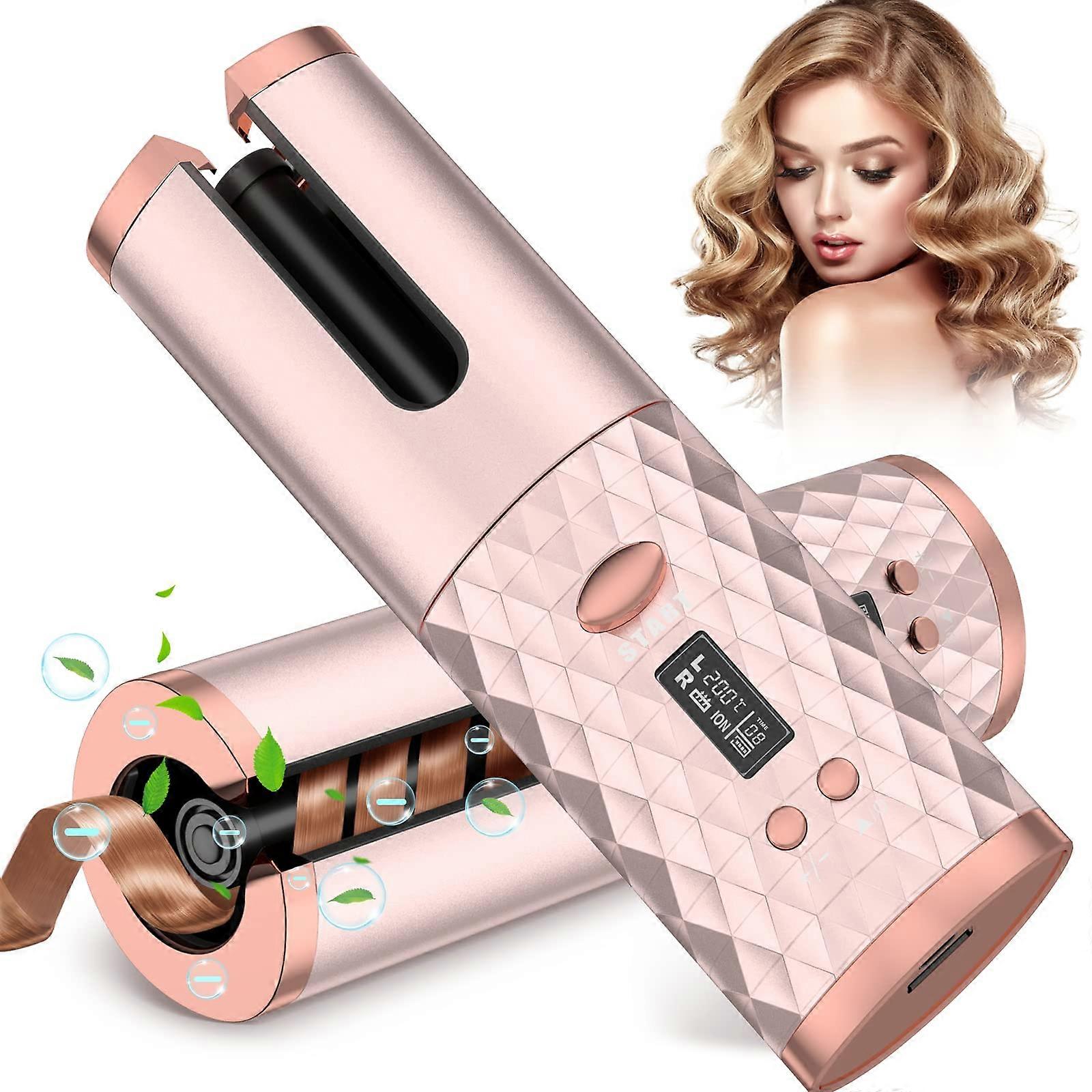 Cordless Automatic Curling Iron with Adjustable Temperature and Timer, Rechargeable Ceramic Hair Curler for Travel